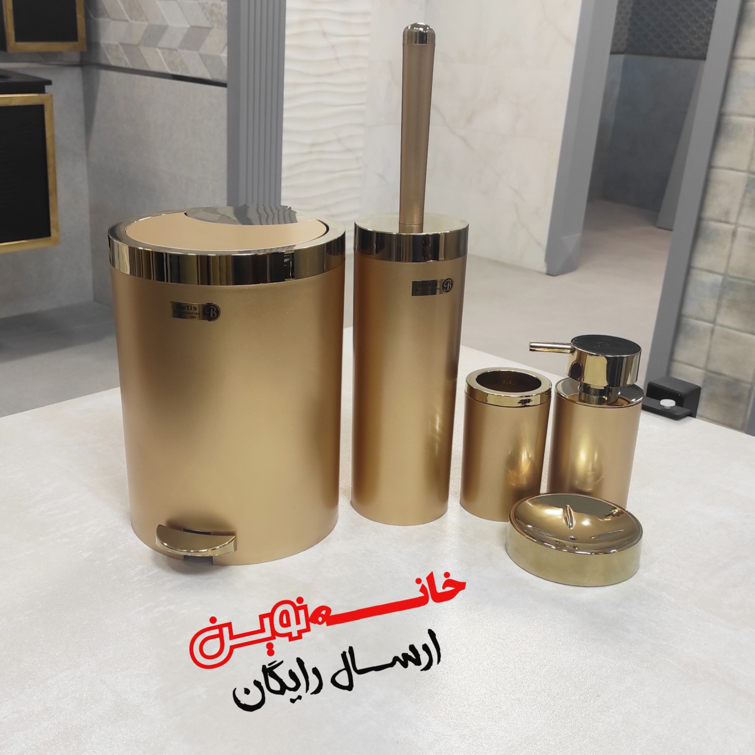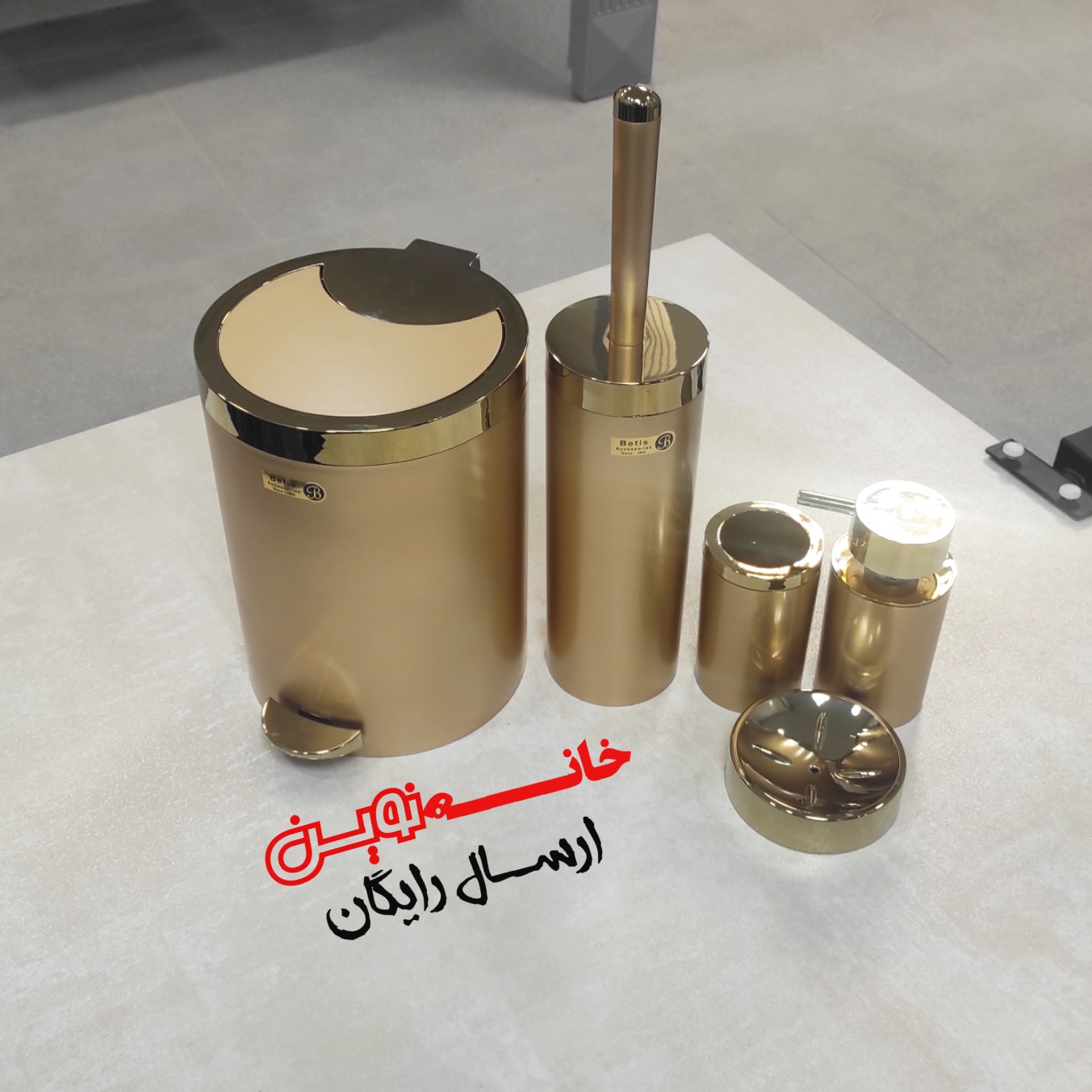 ست 5 پارچه سرویس بهداشتی بتیس مدل شاین جدید رنگ گلد درب دوحالته پدالی و بادبزنی، مبلمونسرا مدل 265387