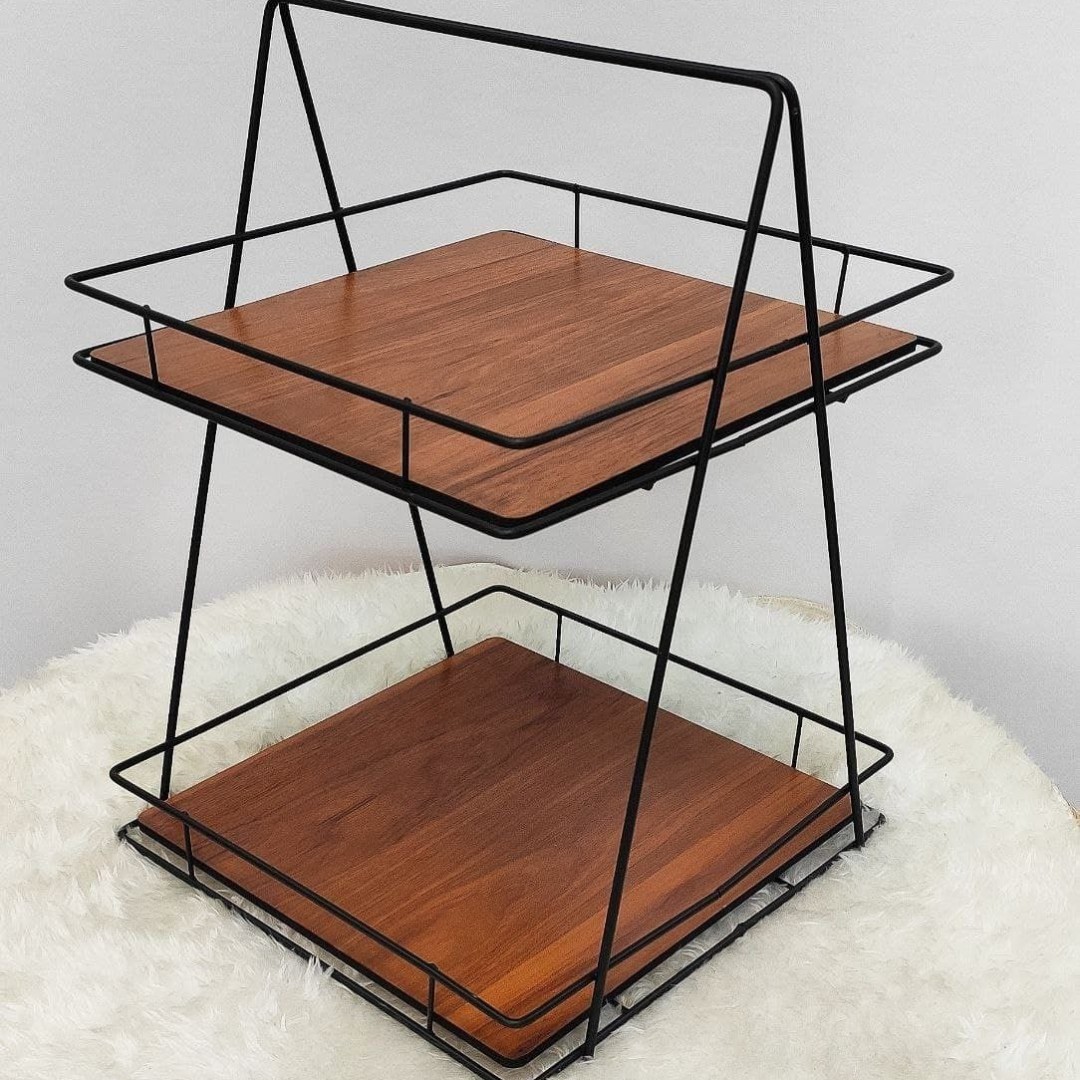 استند پذیرایی و جاادویه ✓ کیفیت عالی ✓ جنس فلزی ، چوبی ✓ طرح دوطبقه با کفی چوبی قابل تعویض ✓ سایز 36 × 27 × 27 سانت ✓ رنگبندی : مشکی با چوب قهوه ای روشن و تیره قیمت با احترام : 340 تومان