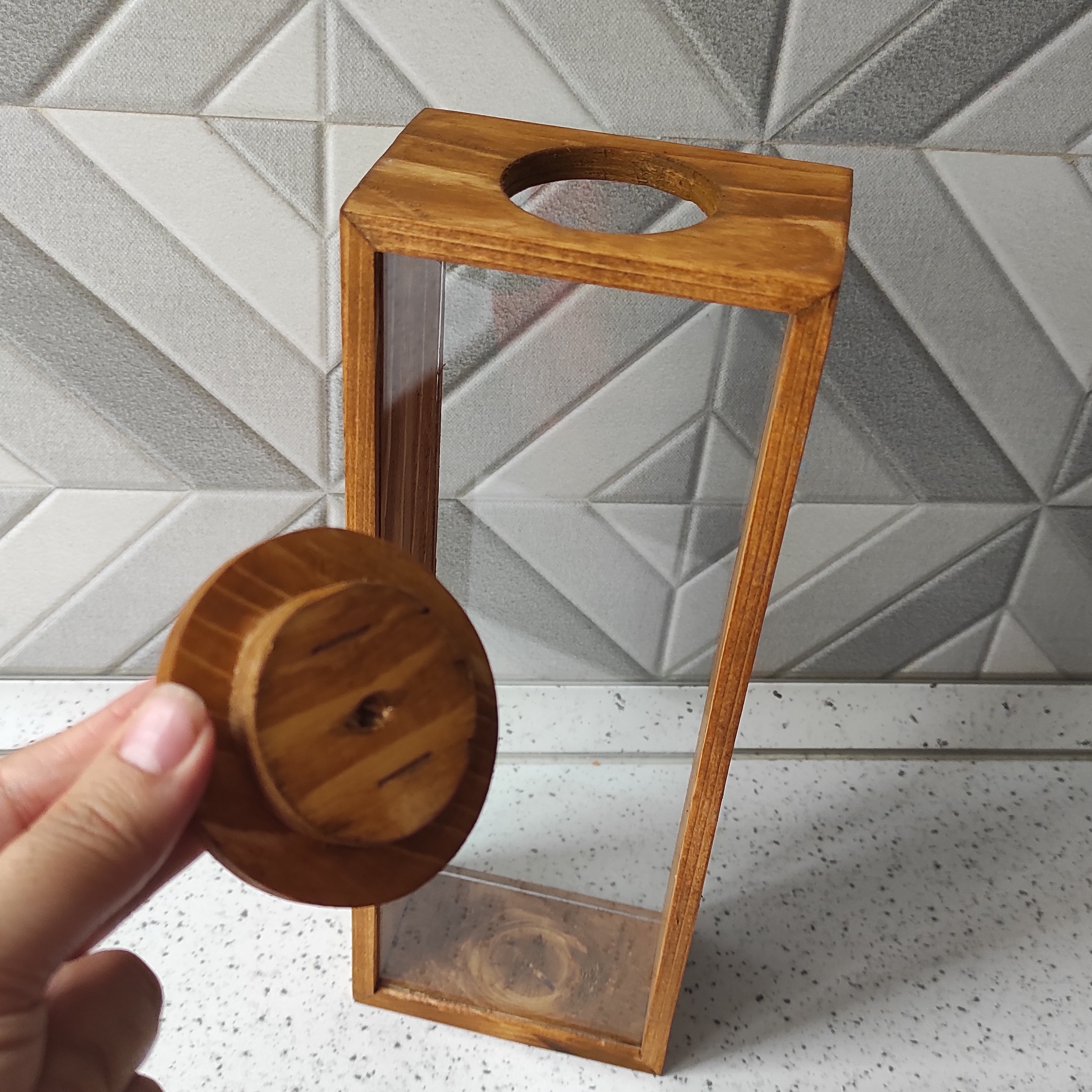 این بانکه ها چوبی واقعا شیکن مناسب برای ماکارونی و حبوبات و حتی پاسماوری برای ریختن گردو وبا دام و پسته ولیمو عمانی گل محمدی و.....مناسبند طول11عرض 7 ارتفاع 30 رنگ قهوه ای تیره شکلاتی هم داره