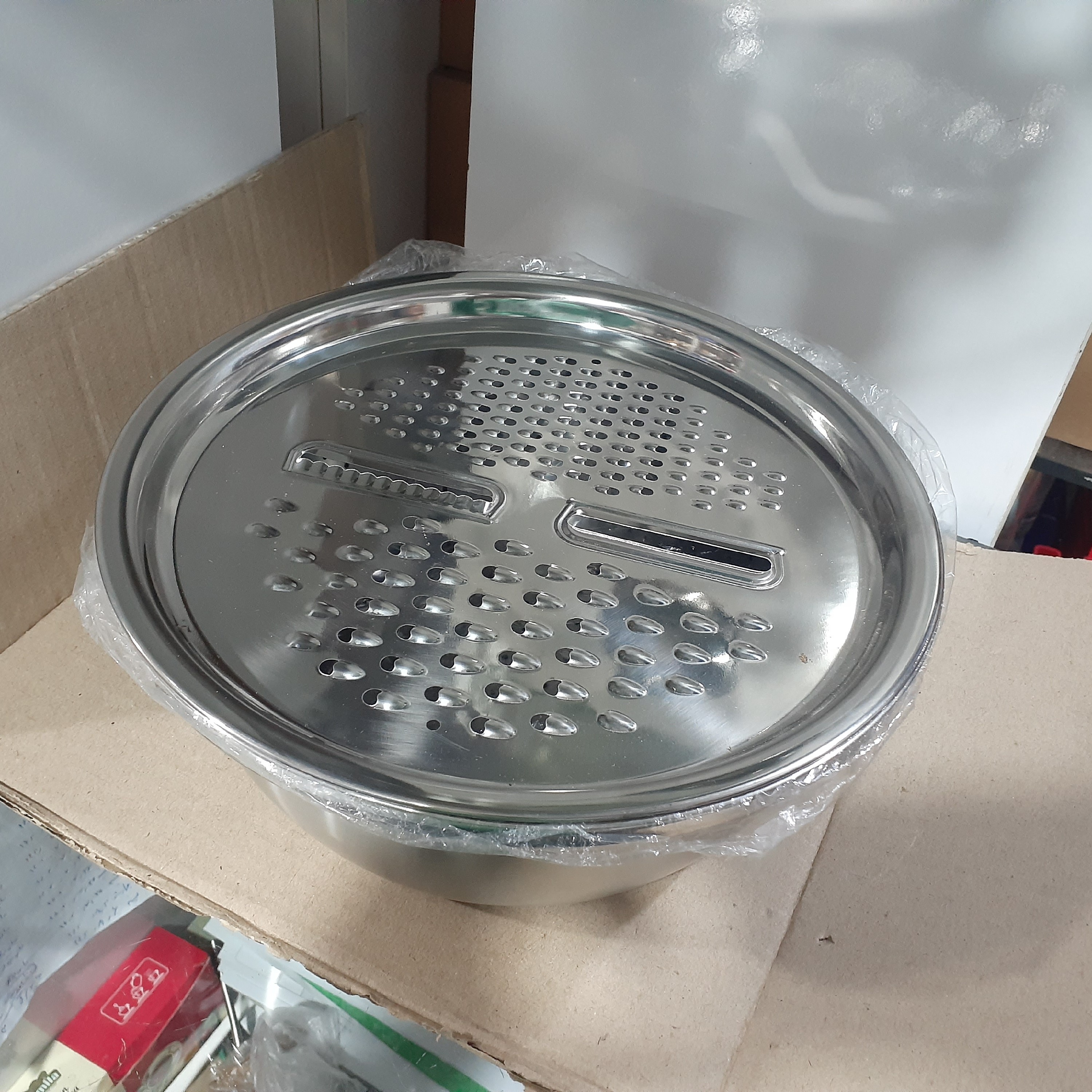 ست سه پارچه استیل لگن ابکش به همراه درب رنده دار کیفیت عالی ضد زنگ مناسب و کاربردی برای اشپزخانه مبلمونسرا مدل 288432
