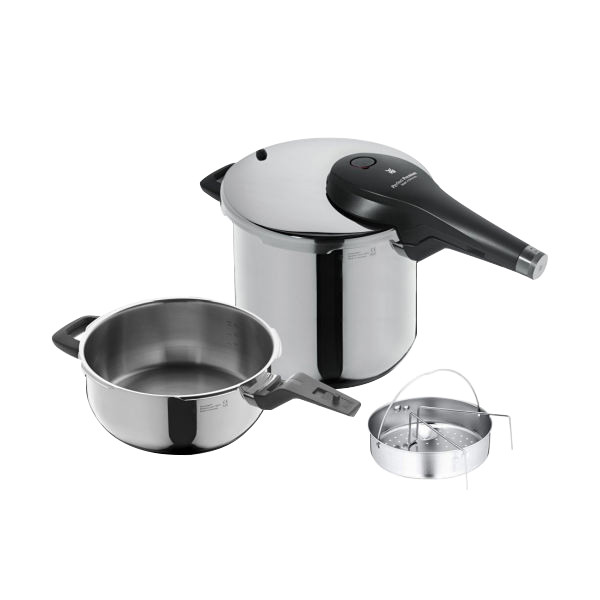 زودپز wmf perfect permium یک محصول با طراحی مدرن و تکنولوژی پیشرفته کشور آلمان است که به شما امکان می دهد غذاهایی جالب و لذیذ تهیه کنید. تکنولوژی خلاق بکار رفته در آن به سادگی شما را متقاعد خواهد کرد که پخت با زودپز wmf perfect permium کار بسیار آسانی است و تمام عملیات پخت با کلید پیشرفته تعبیه شده در انتهای دستیگره قابل کنترل می باشد. در زودپز wmf perfect permium غذا با استفاده از فشار پخته می شود ، این روش باعث می شود زمان پخت غذا تا 70% کاهش یابد،که صرفه جویی واقعی انرژی است . در هنگام پخت تحت فشار، غذا املاح و ویتامین های خود را حفظ می کند. نه تنها نوآوری و کیفیت ، بلکه تنوع در استفاده نیز استاندارد جدیدی در زودپز wmf perfect permium است. این زودپزبه شما این امکان را می دهد تا مواد غذایی را مستقیماً از فریزر و یا به روش رژیمی بپزید. طبقات مختلفی که در زودپز wmf perfect permium قرار می گیرد به شما این امکان را می دهد تا غذاهای مختلف را با هم و با صرفه جویی در وقت بپزید. علاوه بر روش های مختلف پخت، شما میتوانید برای استرلیزه کردن و هواگیری ظروف و آب گیری از زودپز wmf perfect permium استفاده کنید. برای آشنایی بهتر شما با زودپز wmf perfect permium دستورالعمل استفاده (همراه با نکات ایمنی) ،با جدول زمان پخت مواد غذایی مختلف را به عنوان مرجع برای شما تهیه کرده ایم. حتماً دستورالعمل استفاده از زودپز wmf perfect permium را با دقت مطالعه کنید و با بکارگیری قست های مختلف آن آشنا شوید. شما از زودپز wmf perfect permium طوری لذت خواهید برد که آشپزی بدون آن دیگر برایتان ممکن نخواهد بود. زودپز wmf perfect permium دارای دستگیره با قابلیت جداشدن می باشد که امکان شستشو راحت و با استفاده ماشین ظرفشویی را فراهم میکند. کف این زودپز از ویژگی TransTherm استفاده شده است، این ویژگی کمک می کند تا گرما به طور یکنواخت در تمامی قسمت ها پخش شده و مواد غذایی درون قابلمه به صورت یکدست پخته شود. شما می توانید ظروف استیل تان را به راحتی با آب گرم و مایع ظرفشویی تمیز نمایید، همچنین می توانید آن ها را در ماشین های ظرفشویی نیز شستشو دهید، .. از زودپز wmf perfect permium آلمان می توانید بر روی انواع اجاق های غذا پزی از جمله گازی و برقی و .. استفاده نمایید.