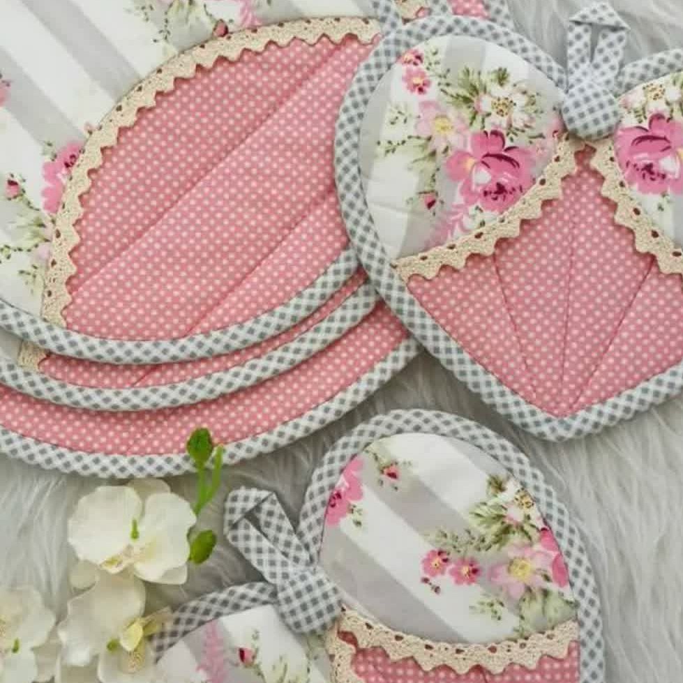 سری دمکنی 4 تایی دوخته شده با پارچه کتان نخ