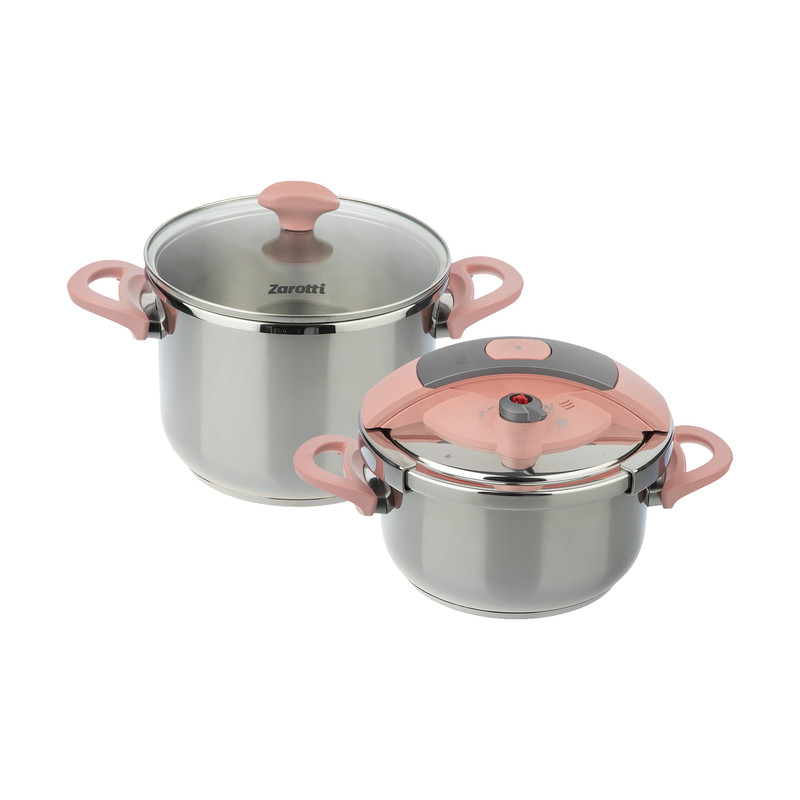 ست دوقلوی این محصول با ظرفیت 6 و 4 لیتری امکان پخت همزمان دو نوع غذا توسط زودپز و قابلمه در یک زمان را فراهم می کند . هنگامیکه فرصت اندکی برای آماده سازی غذا دارید این زودپز از طریق بدنه استیل و درب فولاد ضد زنگ با کیفیت 18/10 و کیفیت استاندارد 304 استیل، با حرارتی یکنواخت در تمام قسمتها سریعترین غذا را با حفظ ارزشهای غذایی در اختیار شما قرار میدهد. جنس دستگیرهها از نوع باکالیت طراحی شده که در مقابل حرارت مقاوم هستند تا در زمان پخت آسیبی به آنها وارد نشود. درب این زودپز با فشار یک دست به راحتی باز و بسته میشود و کار کردن با آن بسیار راحت است. کف کالا ازجنس فولاد ضد زنگ و آلومینیوم می باشد و به دلیل قابلیت کپسولی بودن این مزیت را دارد که حرارت را به طور یک نواخت به تمام قسمت ها برساند .