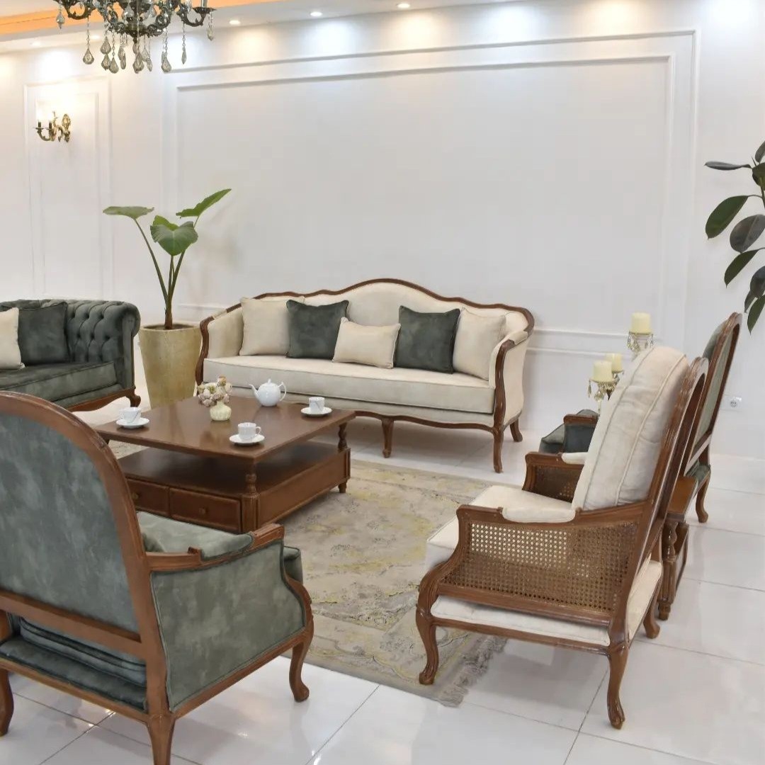 مدل کویین فرانسوی ⚜️کاناپه سه نفره تاج انحنا+چستر کویین+دو عددمبل کوئین فرانسوی+جلو مبلی عسلی ⚜️ناهارخوری ۴+۶+۸ مبل کویین ابزاری چند مدل داریم که مطابق سلیقتون انتخاب کنید.