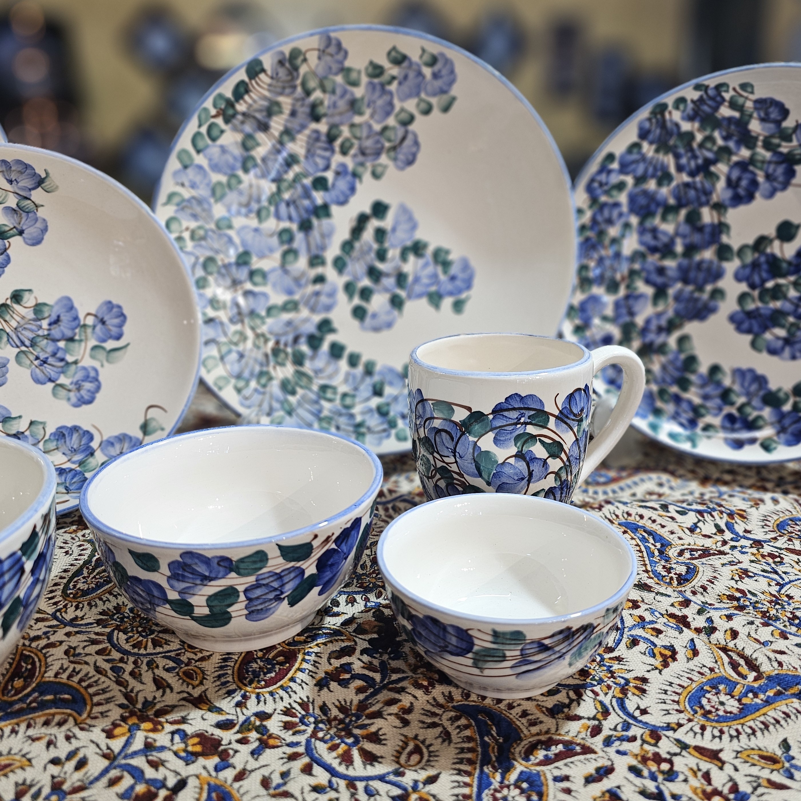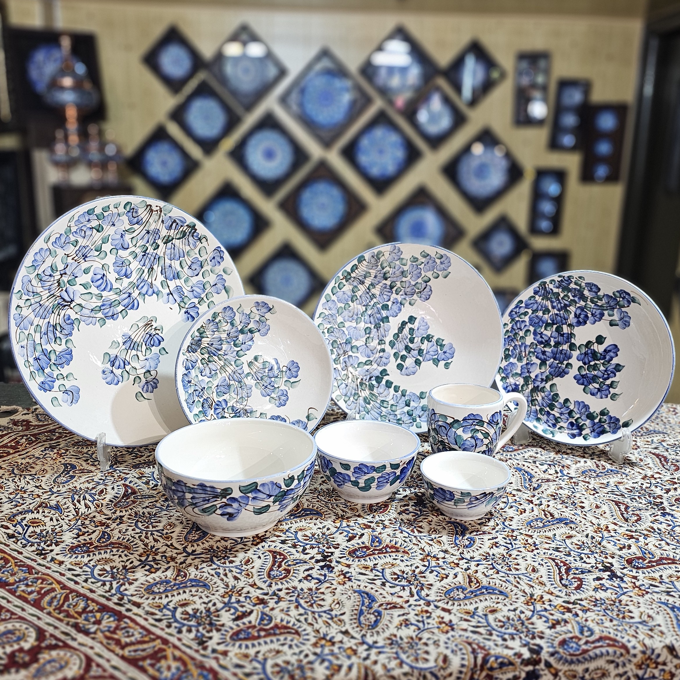 جنس سرویس از نوع سرامیک هستش و نقاشی روش کاملا دستی و رنگ آن از نوع لعاب کوره ای میباشد. سرویس شامل : پلو ۶ عدد خورش ۶ عدد میوه ۶ عدد آبگوشت ۶ عدد ماست خوری ۶ عدد ترشی خوری ۶ عدد لیوان ۶ عدد پارچ ۱ عدد دیس برنج ۱ عدد ظرف سالاد بزرگ ۱ عدد این سرویس قابل تعقیر از نظر تعداد میباشد