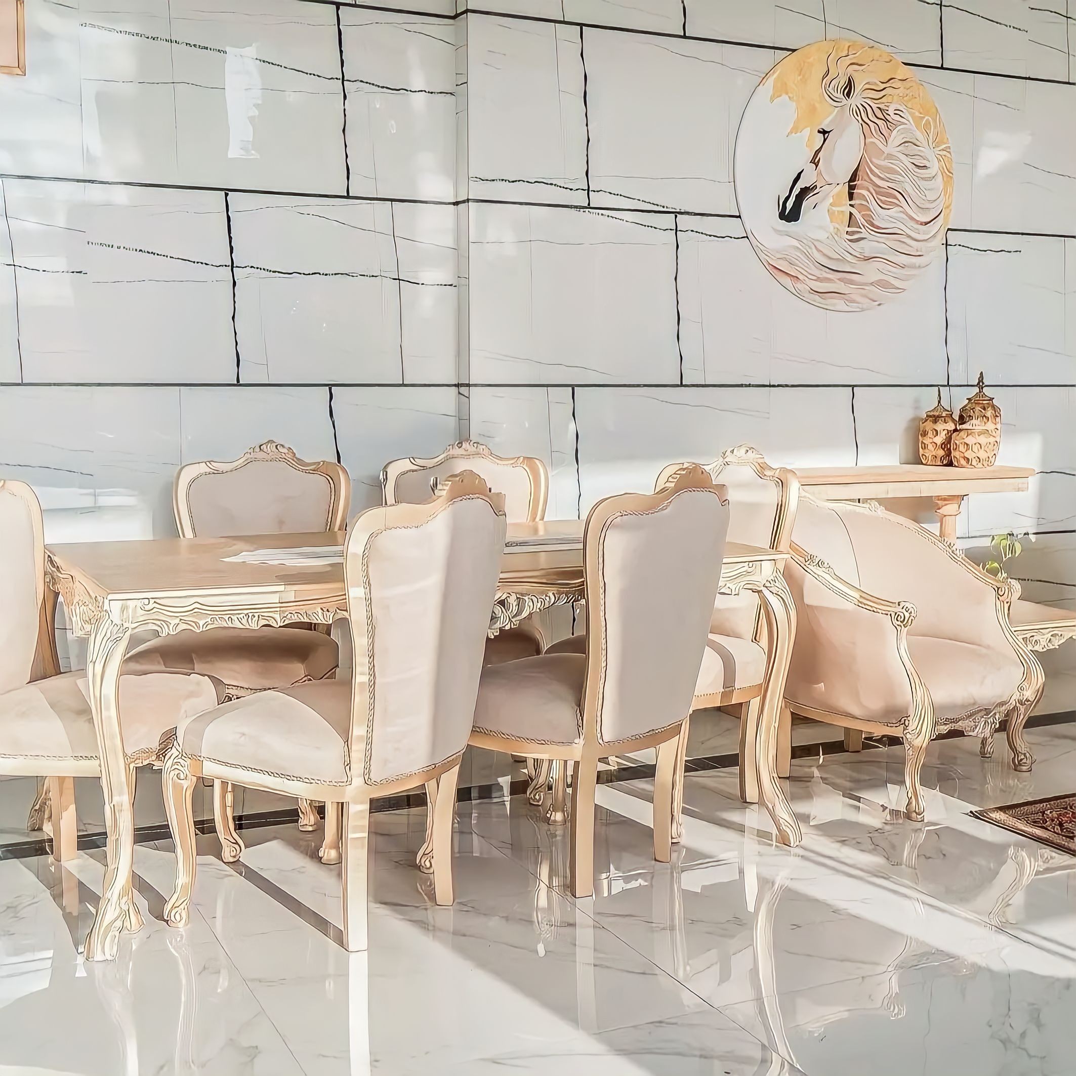 مبل زمرد ⚜️ سه نفره طرح زمرد+چهار عدد مبل زمرد+جلو مبلی و عسلی دارای ناهارخوری ۴،۶،۸ نفره 📌انتخاب رنگ چوب و پارچه با مشتری عزیزمون