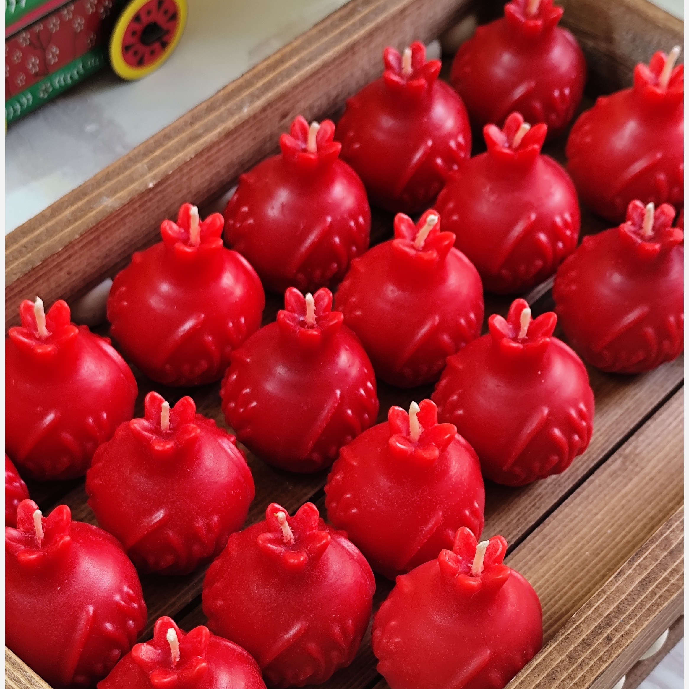 شمع دست ساز با طرح انار یلدا مبارک مناسب برای یلدا با تنوع ترین رنگ بندی