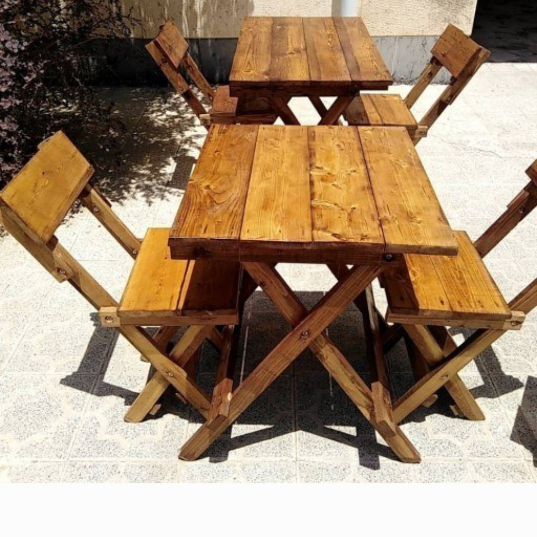 میز صندلی تاشو چوبی درجه یک ساخته شده با بالاترین کیفیت و تنوع رنگی بسار بالا و این محصول یه صورت کامل ضد آب می باشد