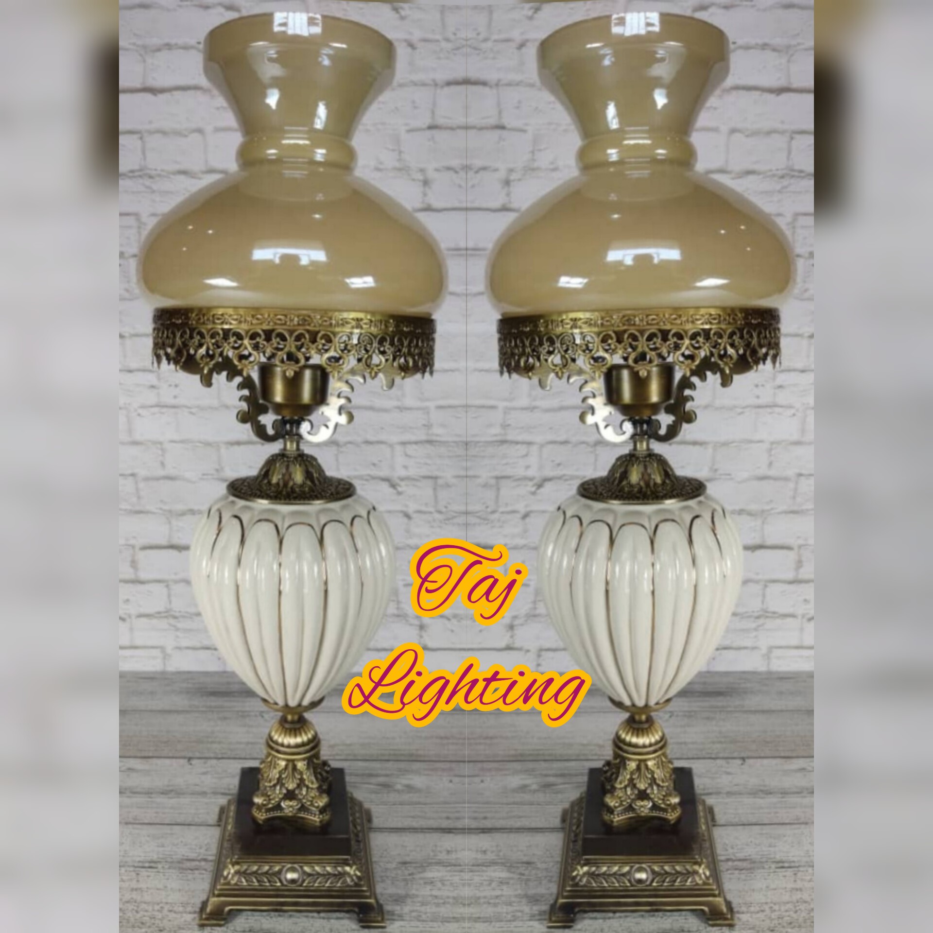💥قیمت درج شده ، قیمت هر عدد چراغ می باشد جنس حباب : بلور رنگ حباب: کِرِم / سفید جنس وسط تنه : چینی رنگ بندی: سفید ، زرشکی ، سورمه ای ، یشمی، فیروزه ای پایه برنز با آبکاری آنتیک درجه 1 همراه با سنگ و امپریال رنگ سنگ به درخواست مشتری قابل تغییر است