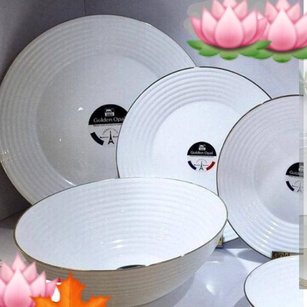 سرویس 26 پارچه گلدن اُپال سفید طرح لب طلا صدفی ، برند، بسبار شیک و زیبا، پلوخوری 6 عدد، خورشت خوری 6 عدد، پیس دستی 6عدد، پیاله ماست 6 عدد، دیس 1 عدد، کاسه سالاد 1 عدد با قابلیت استفاده در ماشین ظرفشویی، رنگ سفید لب طلا، سبک مدرن