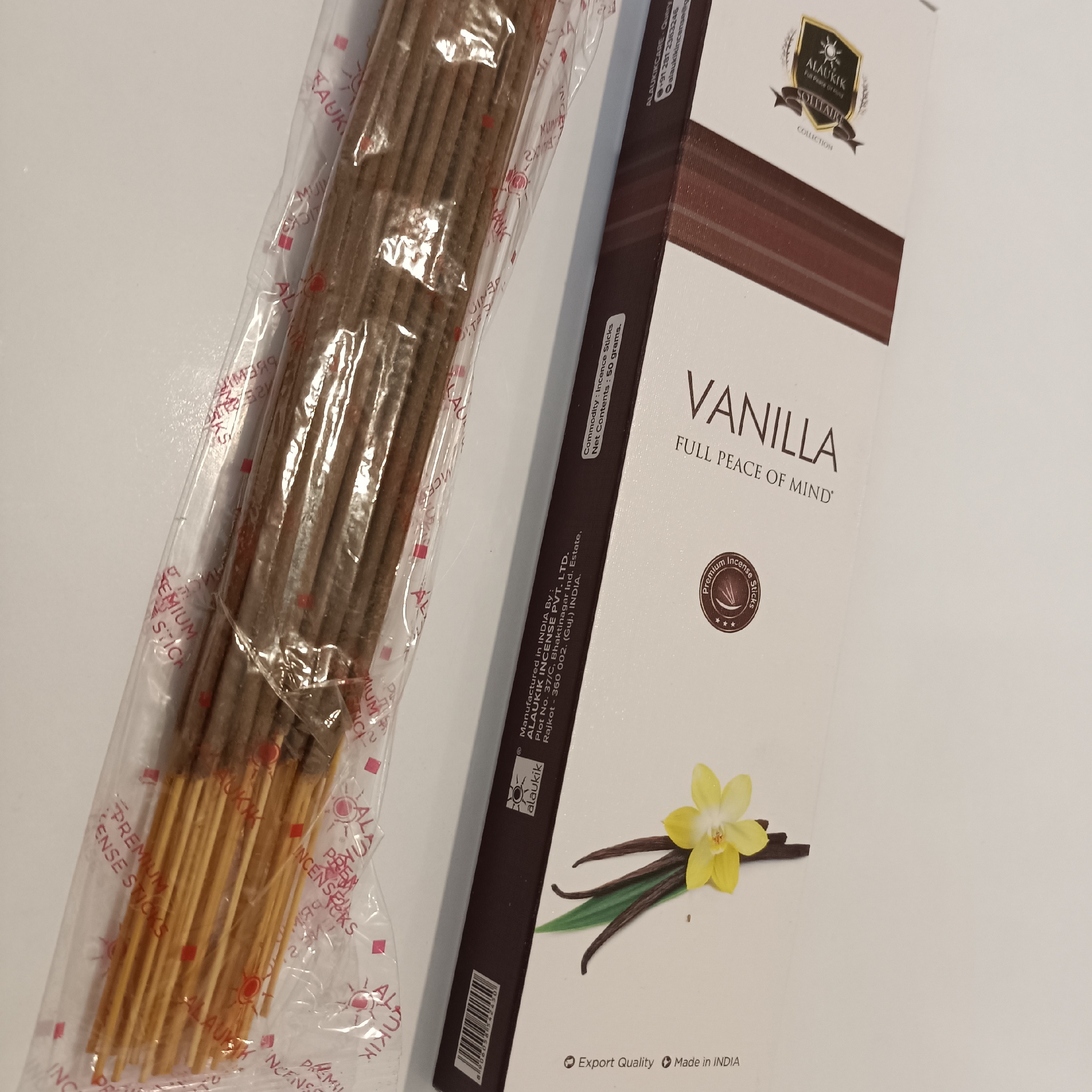 عود گیاهی رایحه وانیل بسیار معطر و خوشبو برند الوکیک ۵۰گرم تعداد در هر بسته ۳۰تا ۳۴شاخه تایم سوخت هر شاخه حدودا ۴۵تا ۶۰دقیقه