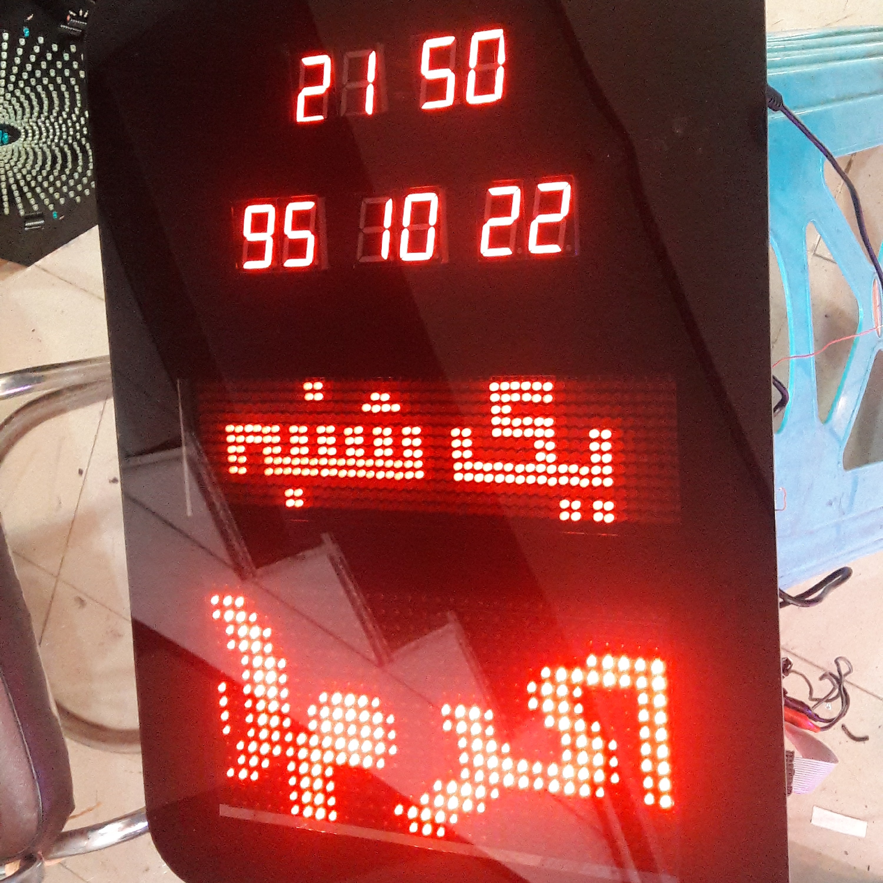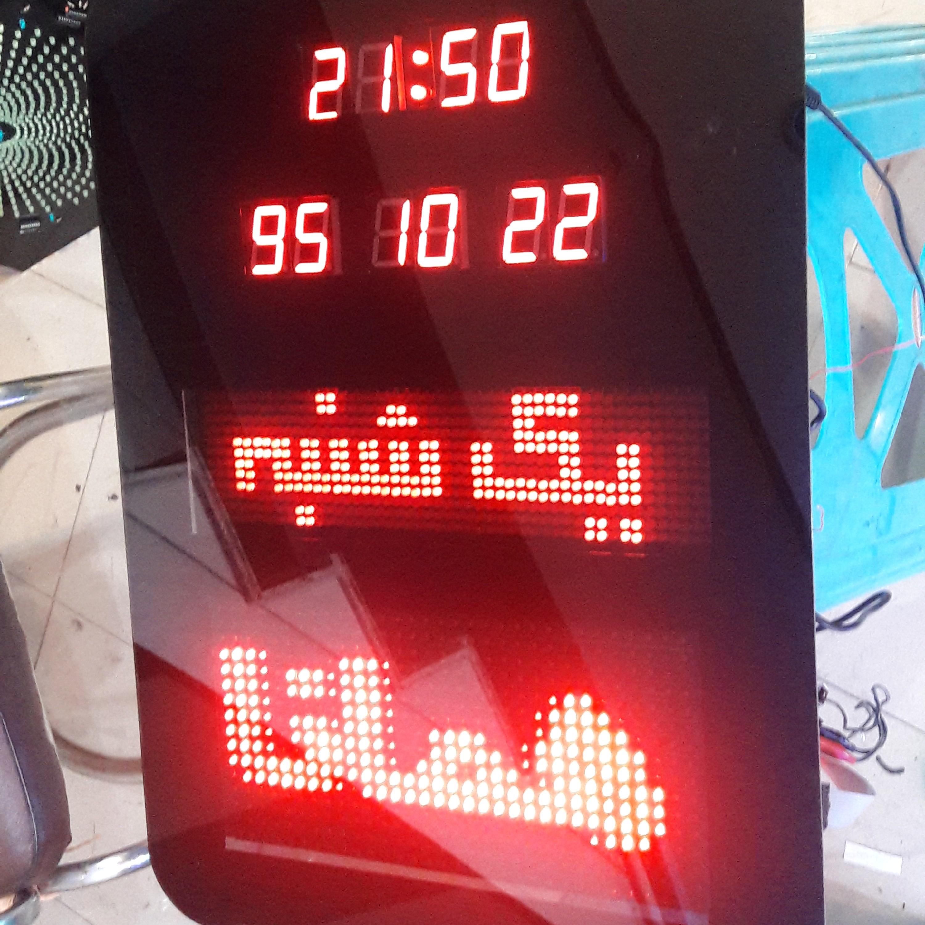 ساعت بانکی یاهمان تابلو بانکی باقابلیت نمایش ساعت و تاریخ شمسی و روزهای هفته و پیام نما با ظرفیت نامحدود در نمایش متن و افکت و انیمیشن و نمایش ارم و لوگو درپیام نما بهمراه ارم و لوگوی شما بر روی صفحه اصلی با برق مستقیم شهر کار میکند و باتری پشتیبان هم جهت حفظ حافظه ساعت در زمان قطع برق دارد. این محصول بصورت سفارشی به هرتعداد قابل تولید است و زمان تحویل درج شده فقط برای یکعدد می باشد که درصورت تعداد بالاتر زمان تحویل به مشتری اعلام میگردد ضمنا قیمتها در تعداد بالاتر متفاوت است درصورت سفارش تعداد برای قیمت هماهنگ بفرمایین