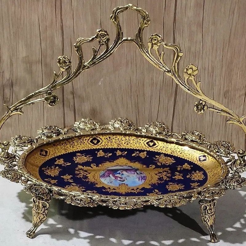 دیس میوه سرمه ایی بیضی 42در32سانت جنس برنز و چینی ،کیفیت بی نظیر مبلمونسرا مدل 270905