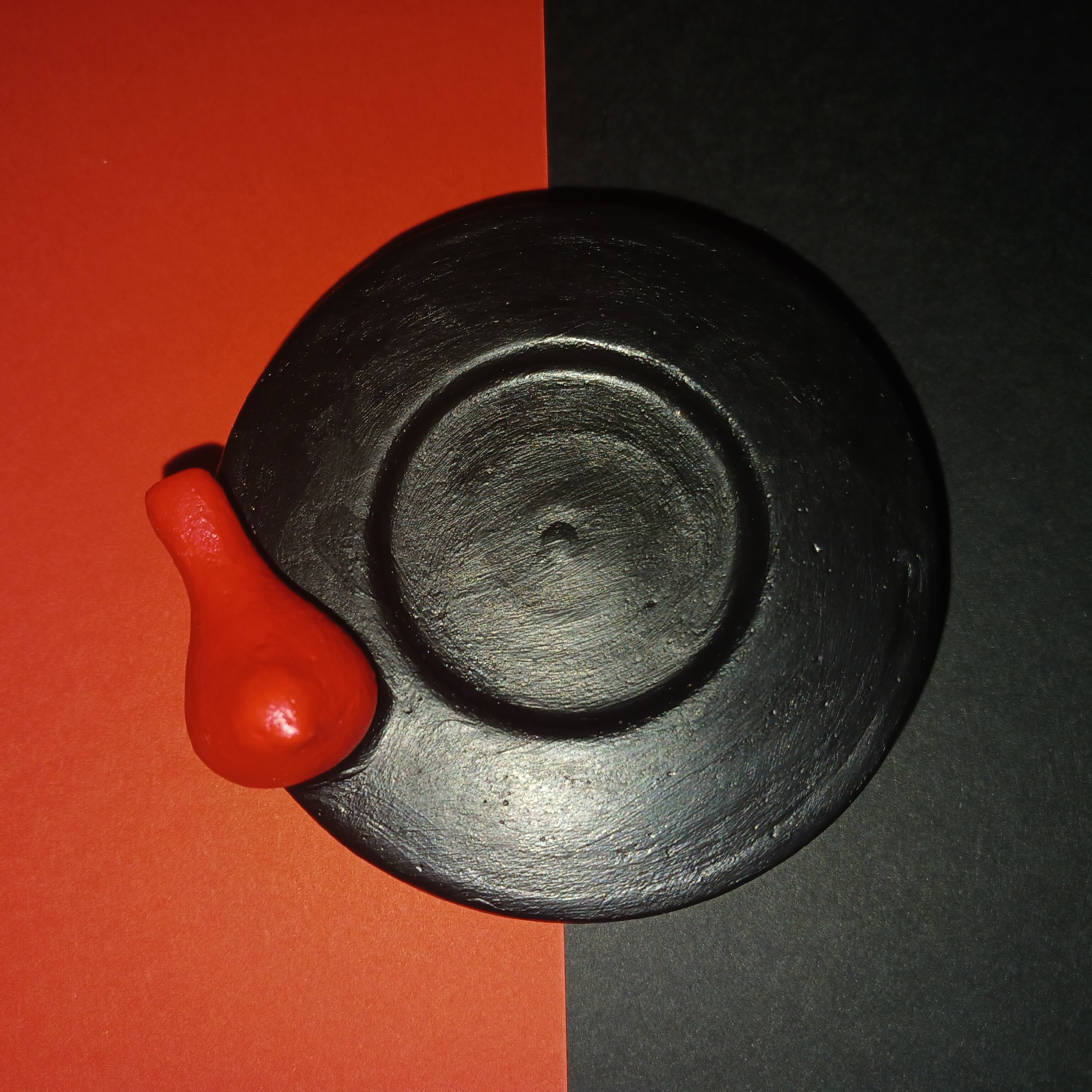 جا شمعی یلدا سفالی رنگ مشکی طراحی شده با رنگ اکرولیک قابل استفاده قابل اجرا در طرح ها و رنگ های دیگه