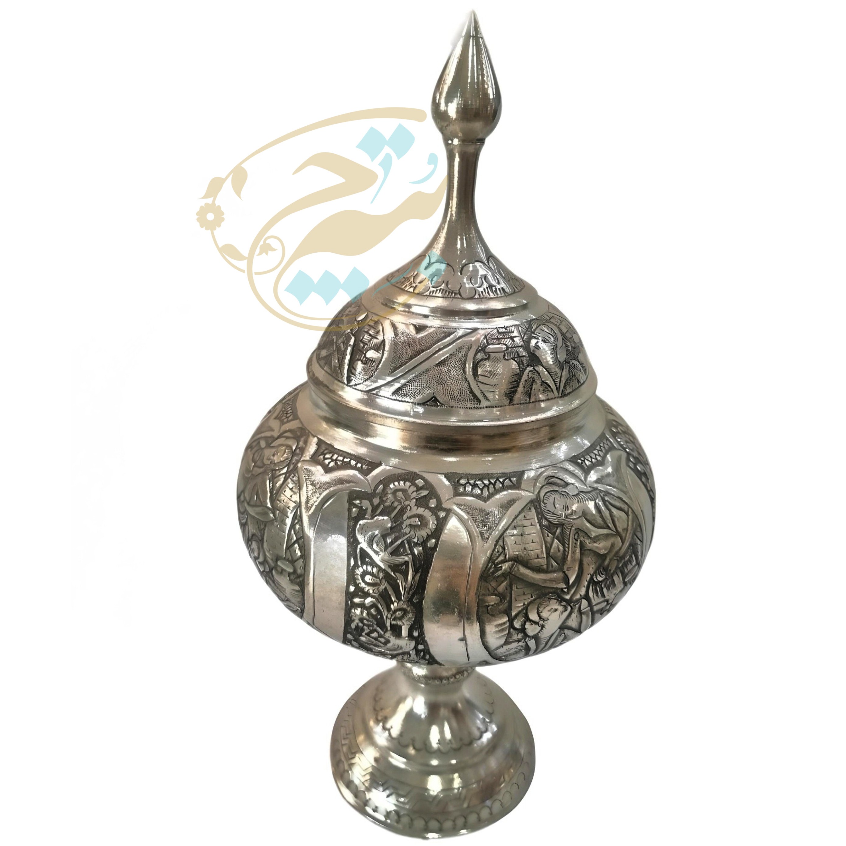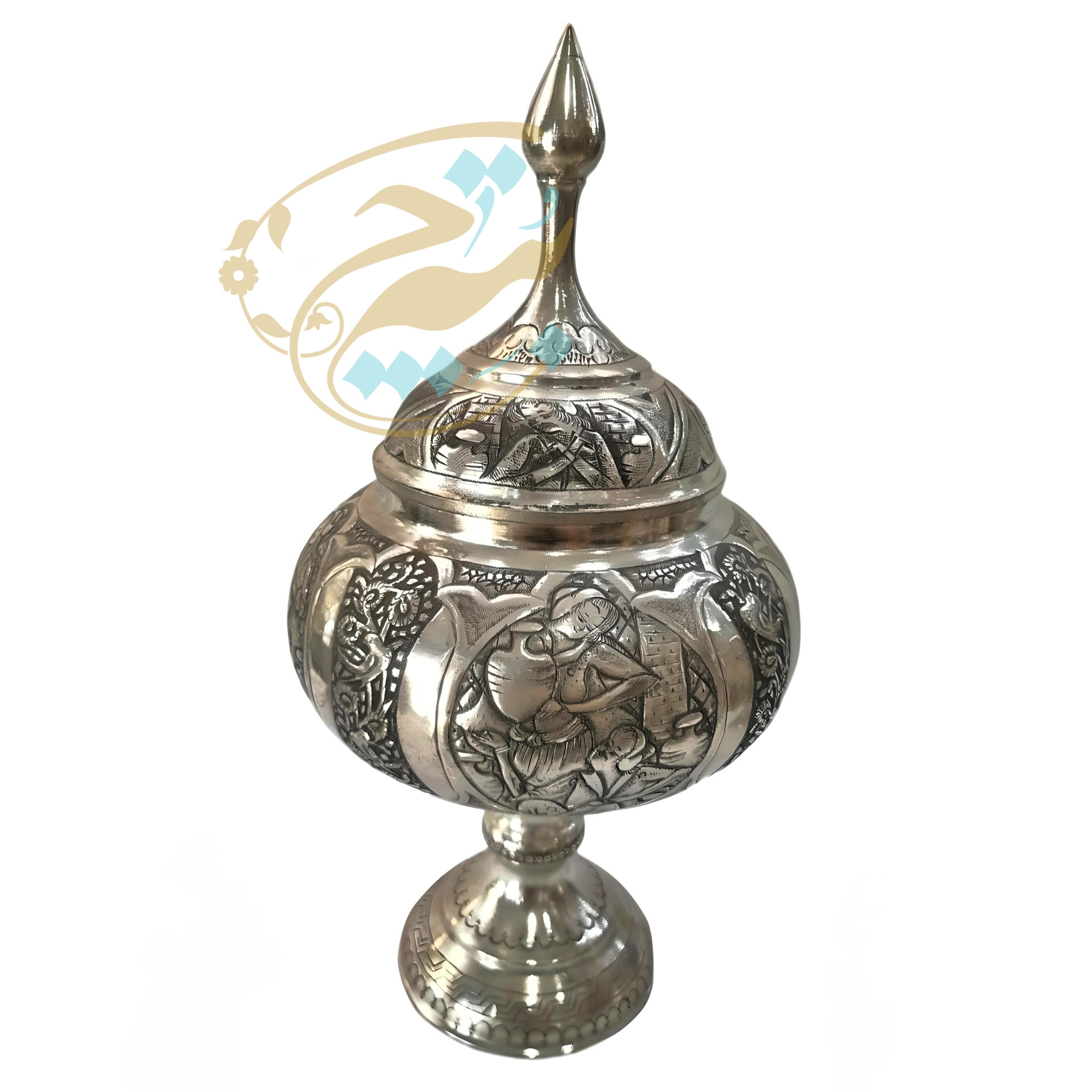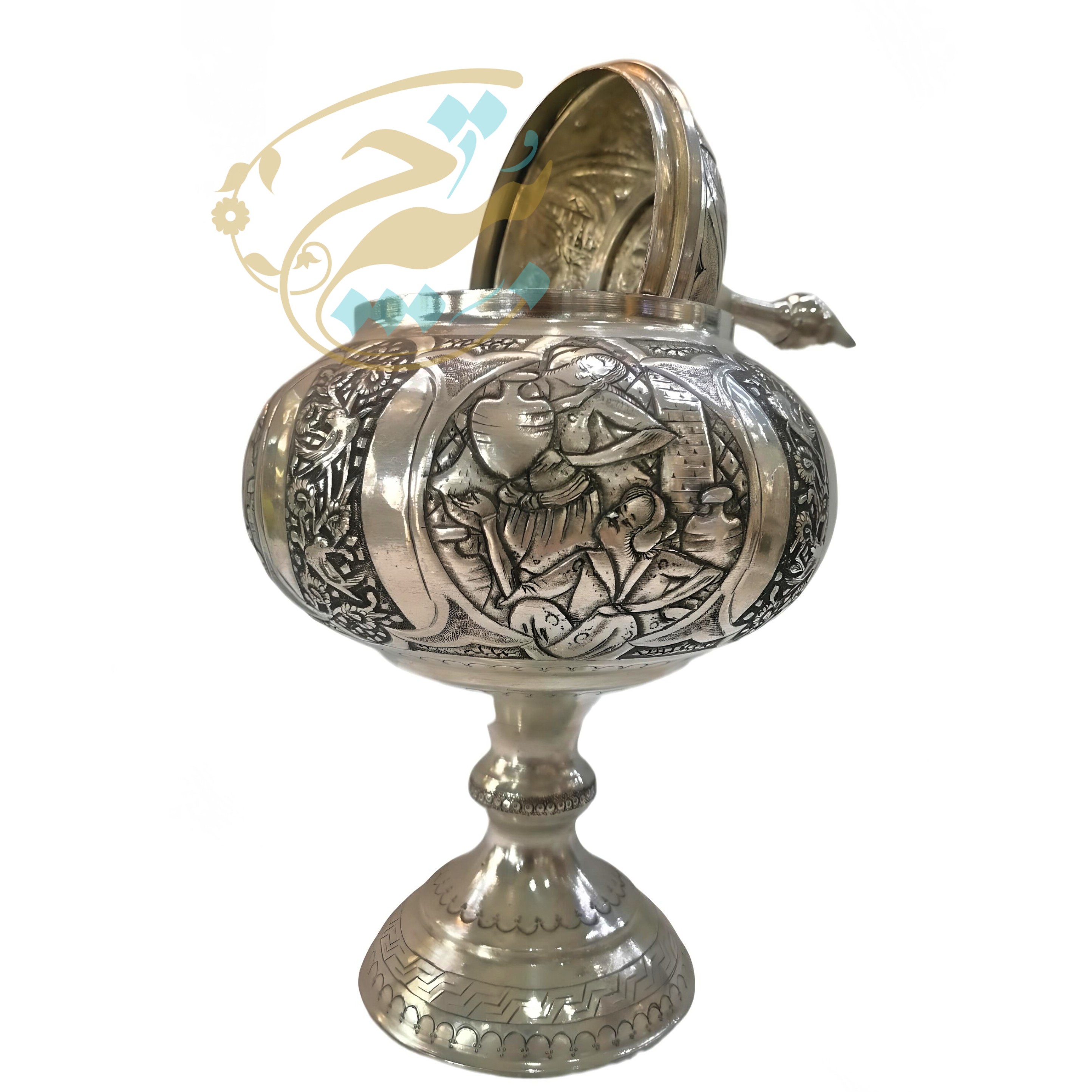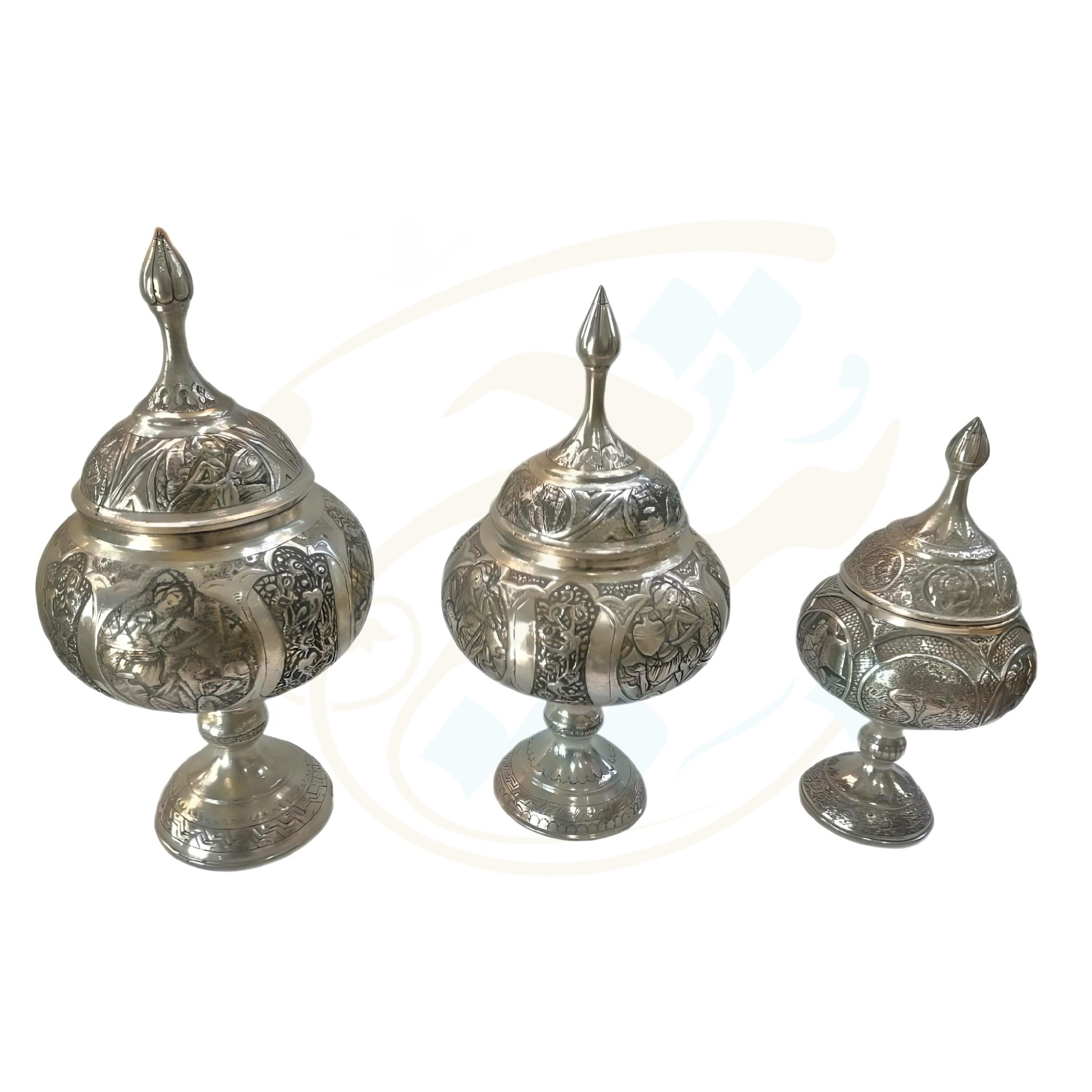 ☑️این شکلات خوری ها اثر دست هنرمندان قلمزن در اصفهان می باشد و نقوش زیبایی با قلم و چکش و با دقت و مهارت خاصی بر روی آن ایجاد شده است و سپس با فلز قلع، اندود و سفید شده است. ☑️قیمت آن ها با توجه به ظرافت و هنر به کار رفته تعیین میگردد، همچنین به ریزی و ظرافت گل و مرغ یا چهره و سایز آنها نیز بستگی دارد.