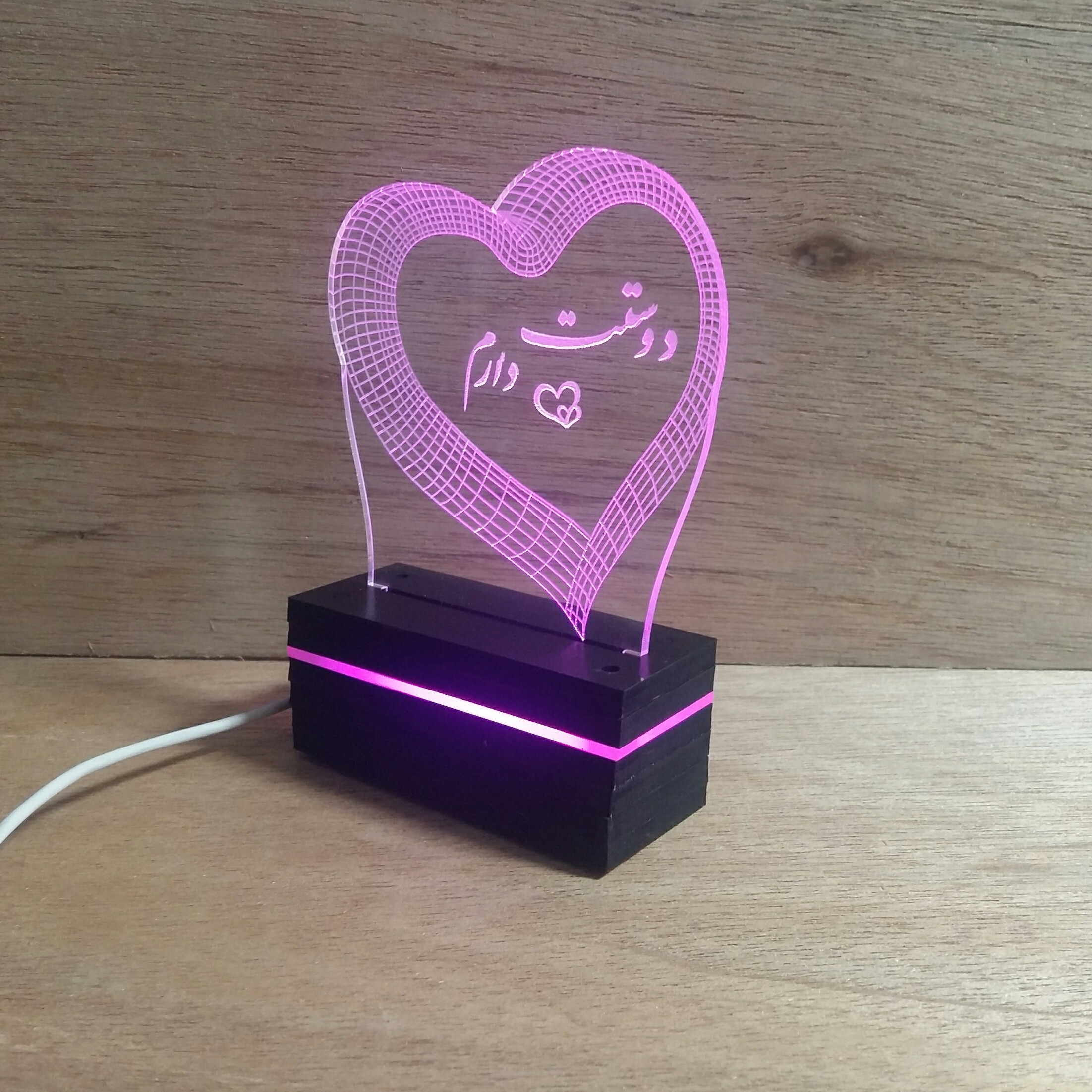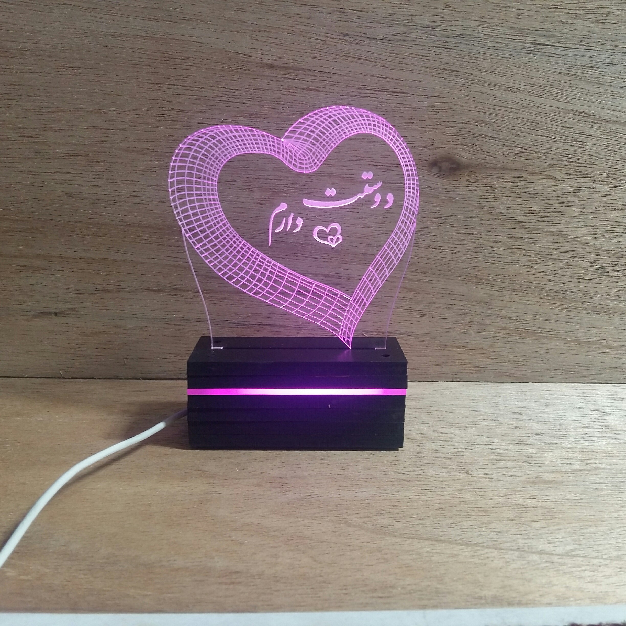چراغ خواب سه بعدی طرح دوستت دارم بنفش بدون آدابتور مبلمونسرا مدل 230464