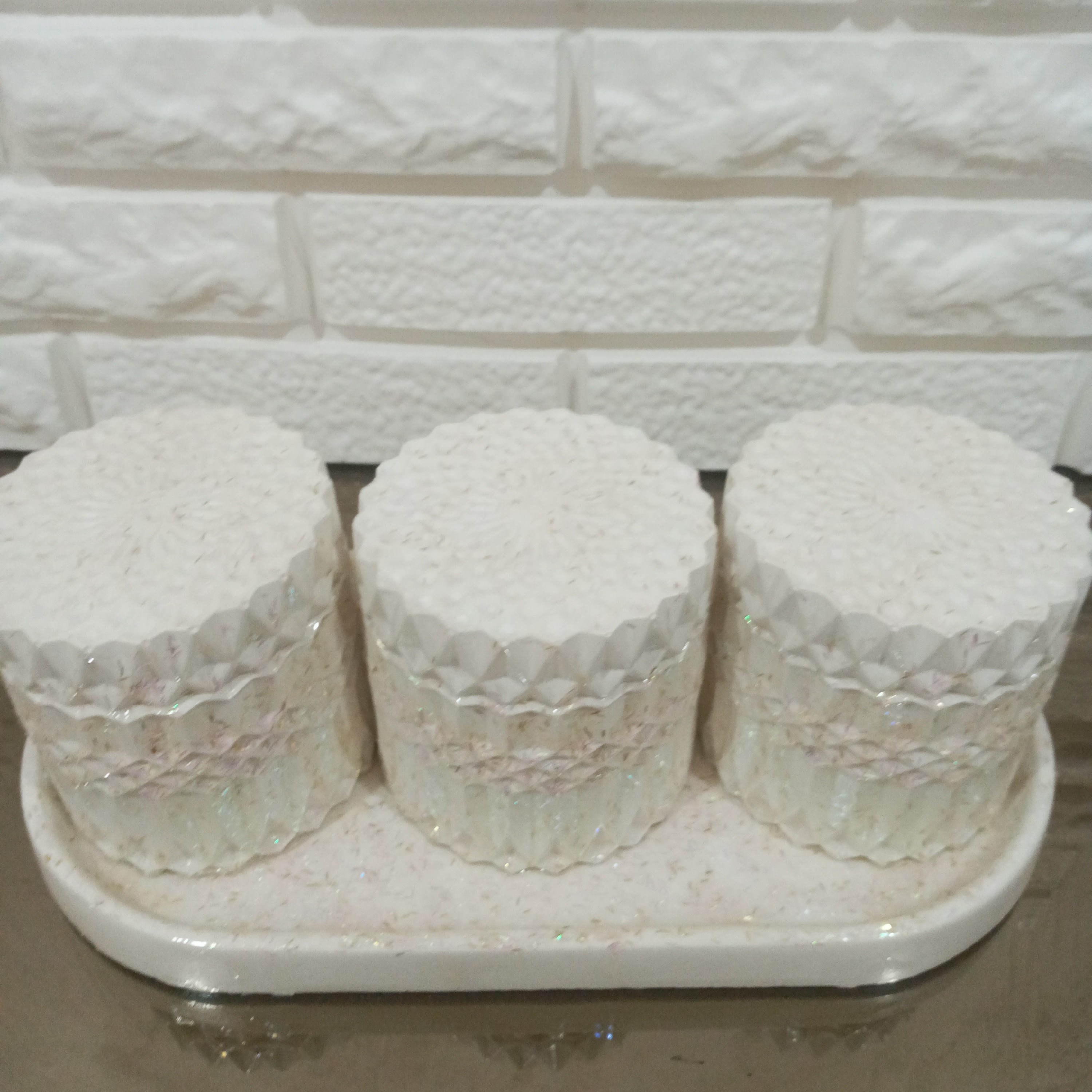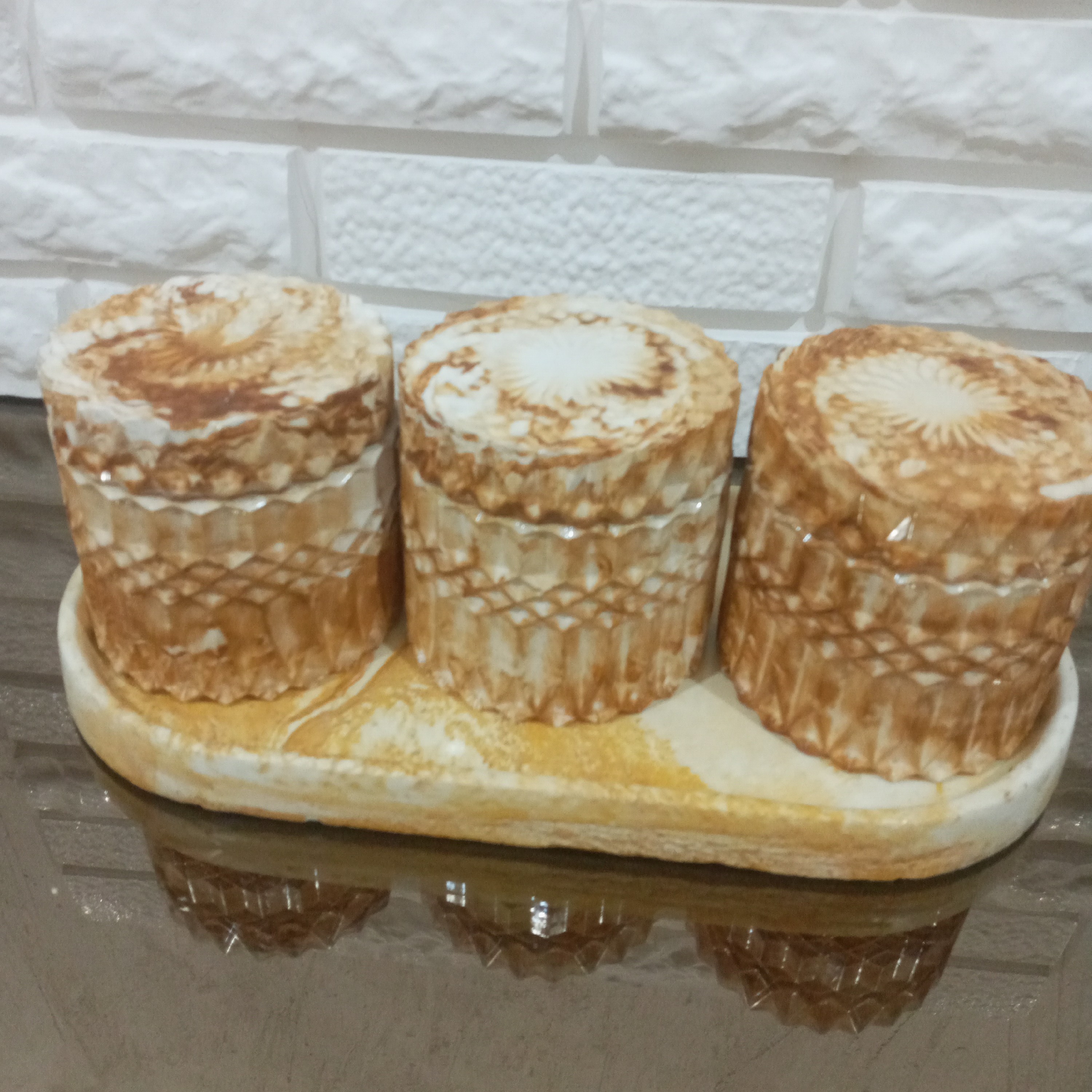 ست بانکه یا پاسماوری شیک ومدرن و پر کاربرد مناسب قند ونبات وشکلات و جاادویه ووو دست ساز جنس سنگ مصنوعی