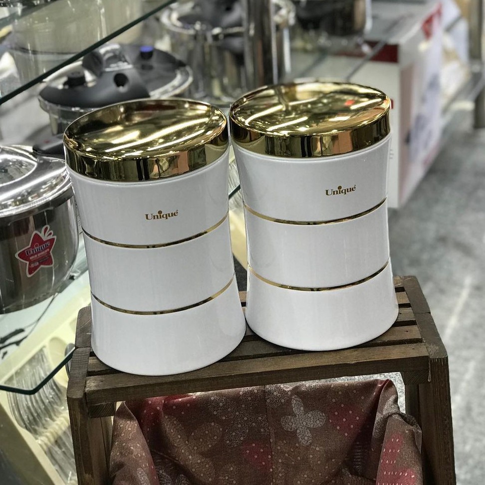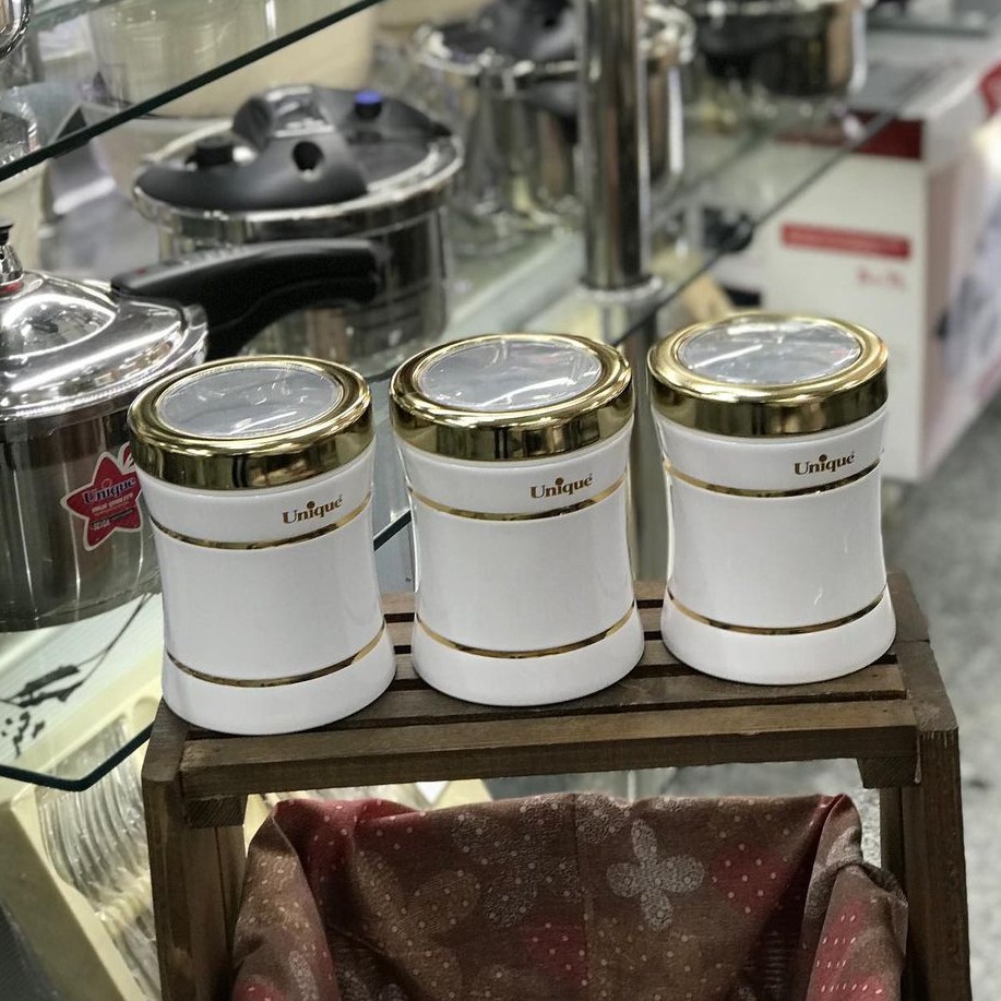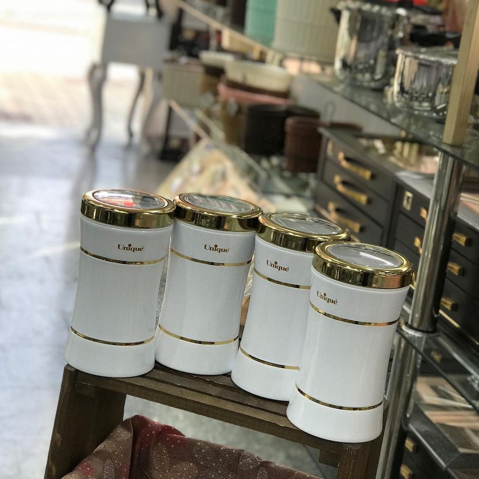 جنس فلزی با روکش آبکاری فوق العاده شیک و بادوام ۱عدد سطل برنج ۱ عدد سطل زباله ۶ عدد قوطی سایز کوچک مناسب ادویه ۳ عدد قوطی سایز متوسط مناسب ادویه و حبوبات ۴ عدد قوطی سایز بزرگ مناسب حبوبات ۱ عدد قوطی مناسب اسپاگتی و رشته ۲ عدد قوطی بزرگ مناسب شکر و چای