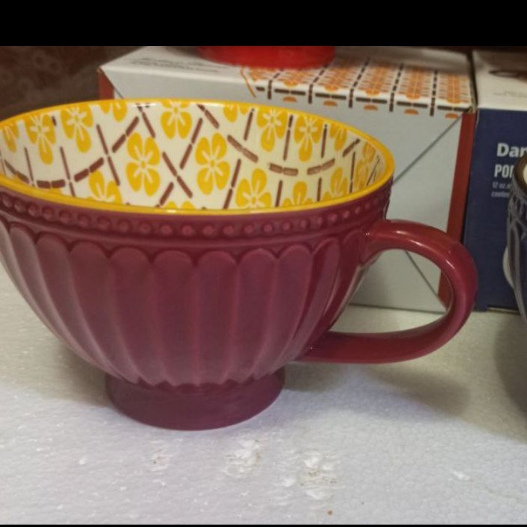 فروش ویژه 😍😍 لته خوری دسته دار Danny home ✅جنس سرامیکی ✅دررنکهاب جذاب🥰 قرمز،سرمه ای،زرد نارتجی سبز ✅وارداتی ✅کیفیت عالی ✅حجم : 355 ml ✅ ارتفاع 9 سانتیمتر قطر 11 سانتیمتر ✅به عنوان سوپ خوری هم استفاده میشود ❌❌مشتری گرامی مدتی هست که شرکت دنی هوم رنگ سبز این محصول رو با برند pashahome وارد کرده که از نظر کیفیت رنگ سایز هیچ فرقی با مدلهای قبلی نداره با خیال راحت ثبت سفارش کنید❌❌