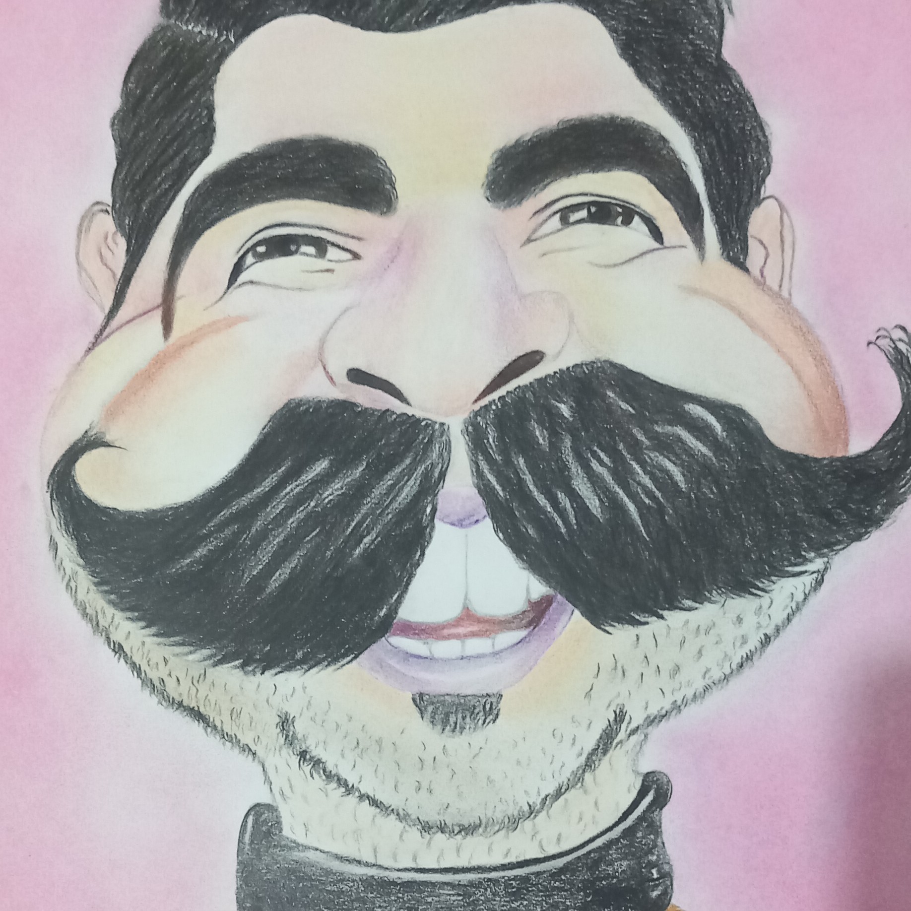 طراحی چهره کاریکاتور بهنام بانی مداد رنگی و پاستل ابعاد 49 در 36 مبلمونسرا مدل 268343