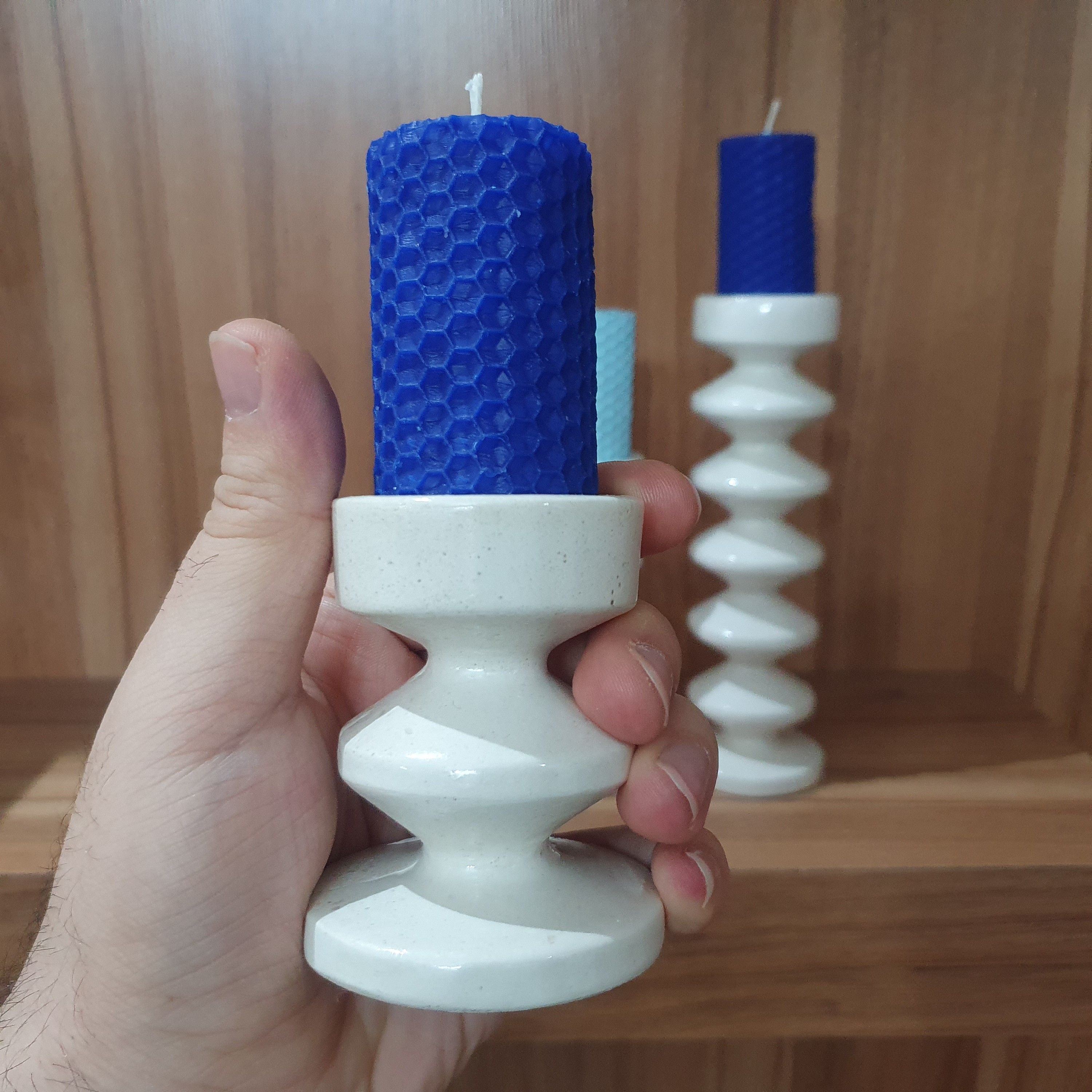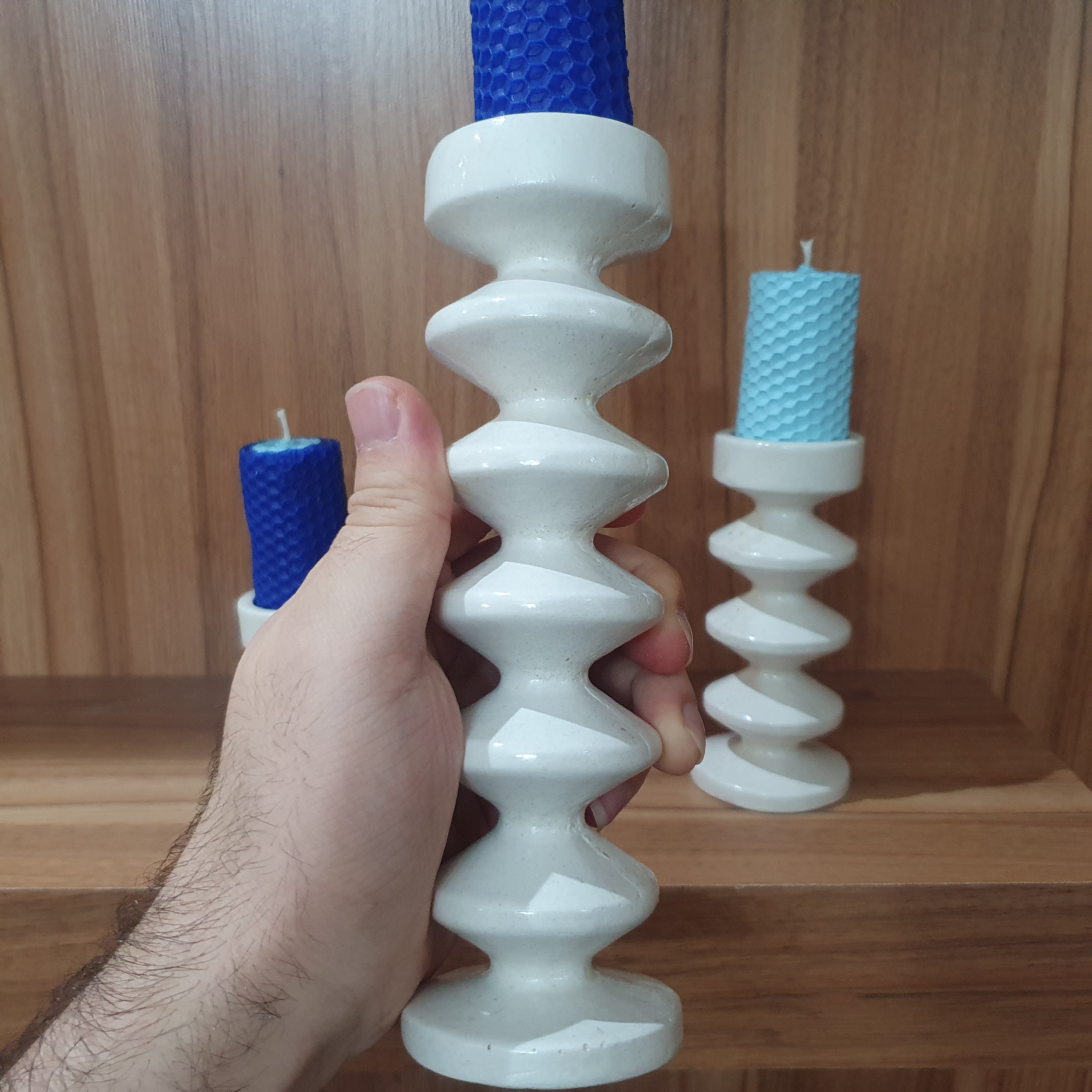جاشمعی دکوری 3تایی با شمع موم عسل جنس سنگ مصنوعی رنگ سفید مبلمونسرا مدل 281672