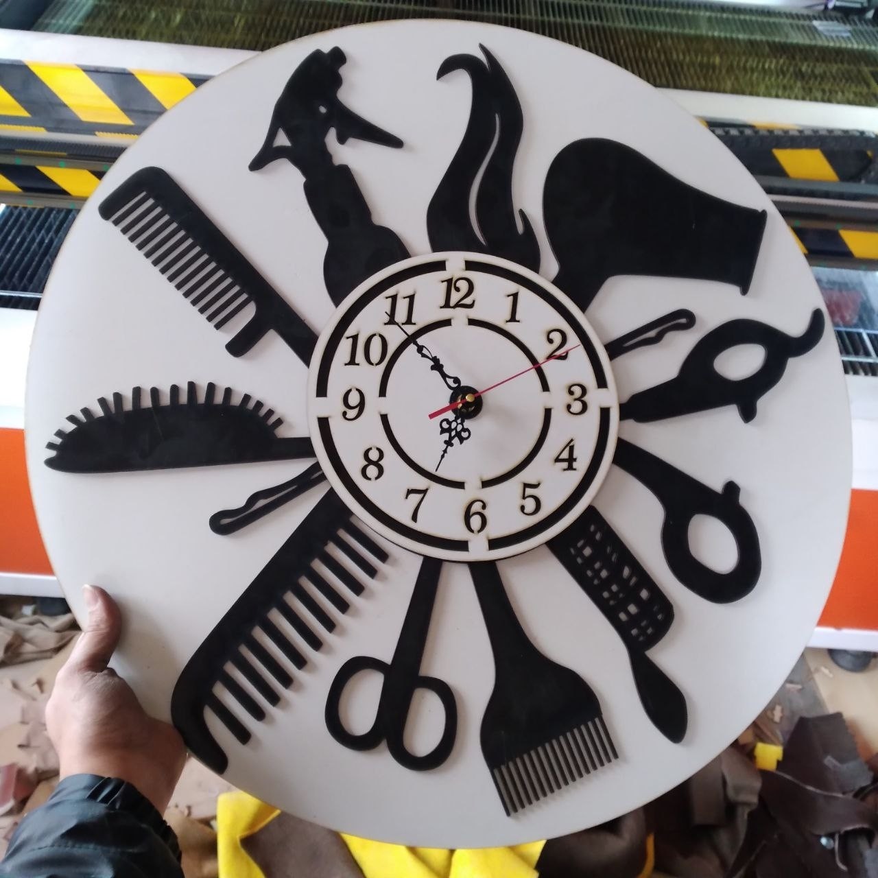 ساعت دیواری آرایشگاه مردانه کد 010 با موتور آرام گرد مبلمونسرا مدل 240131