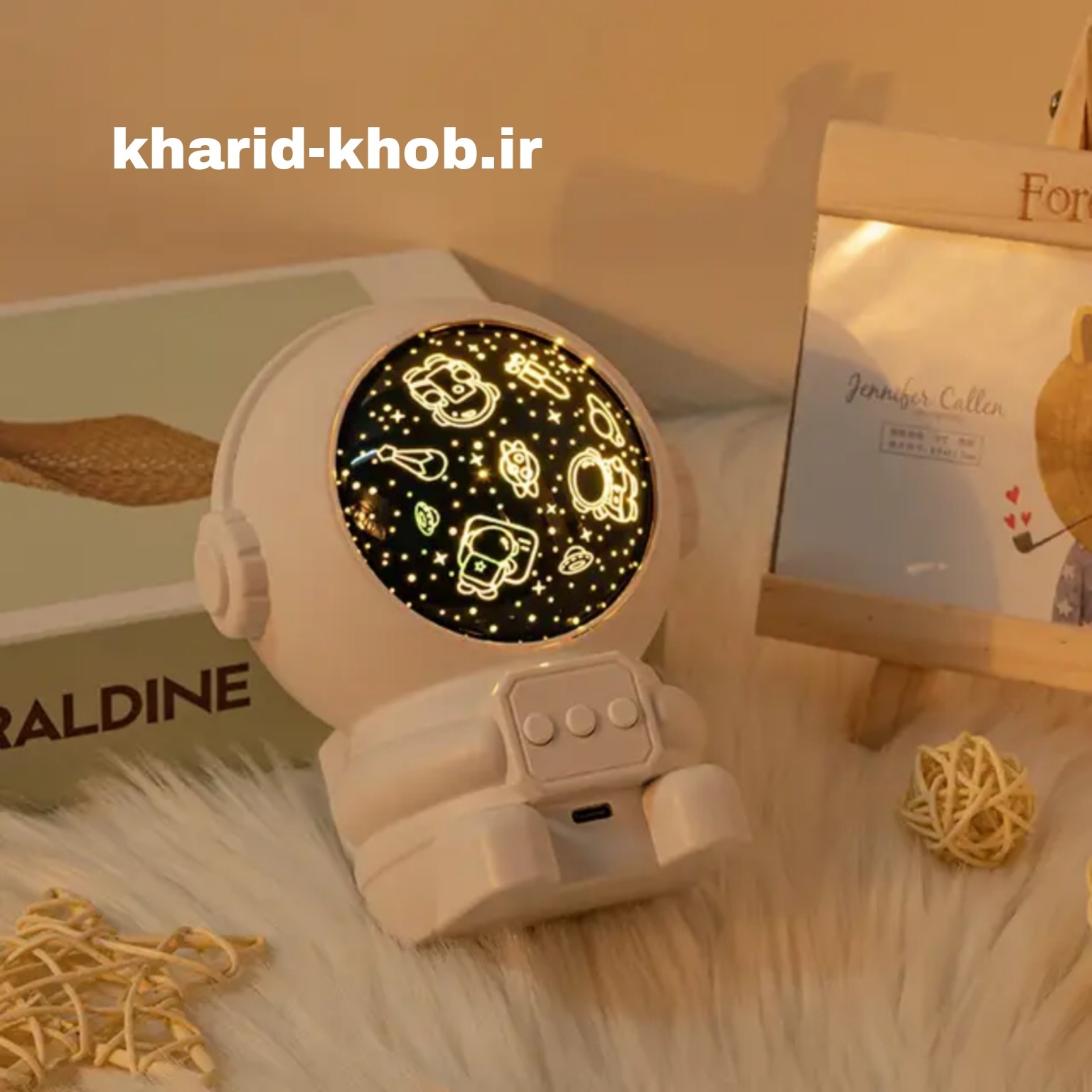 چراغ خواب فضانورد موزیکال باتری و کابل usb با کلید انتخاب رنگ و چرخش بسیار زیبا مبلمونسرا مدل 231358