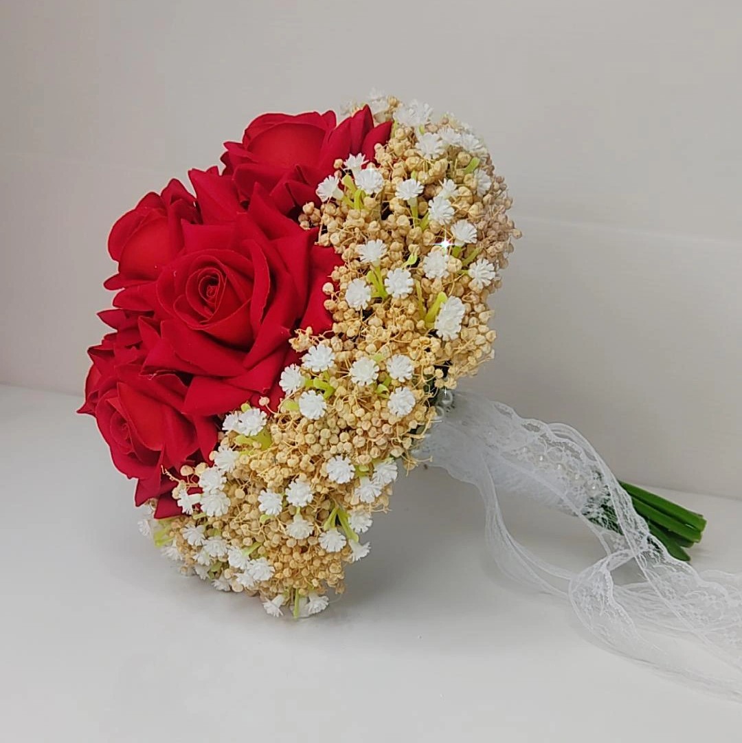 دسته گل خوشکلمون ترکیب گل رز مخملی و ژیپسوفیلاوگل خشک