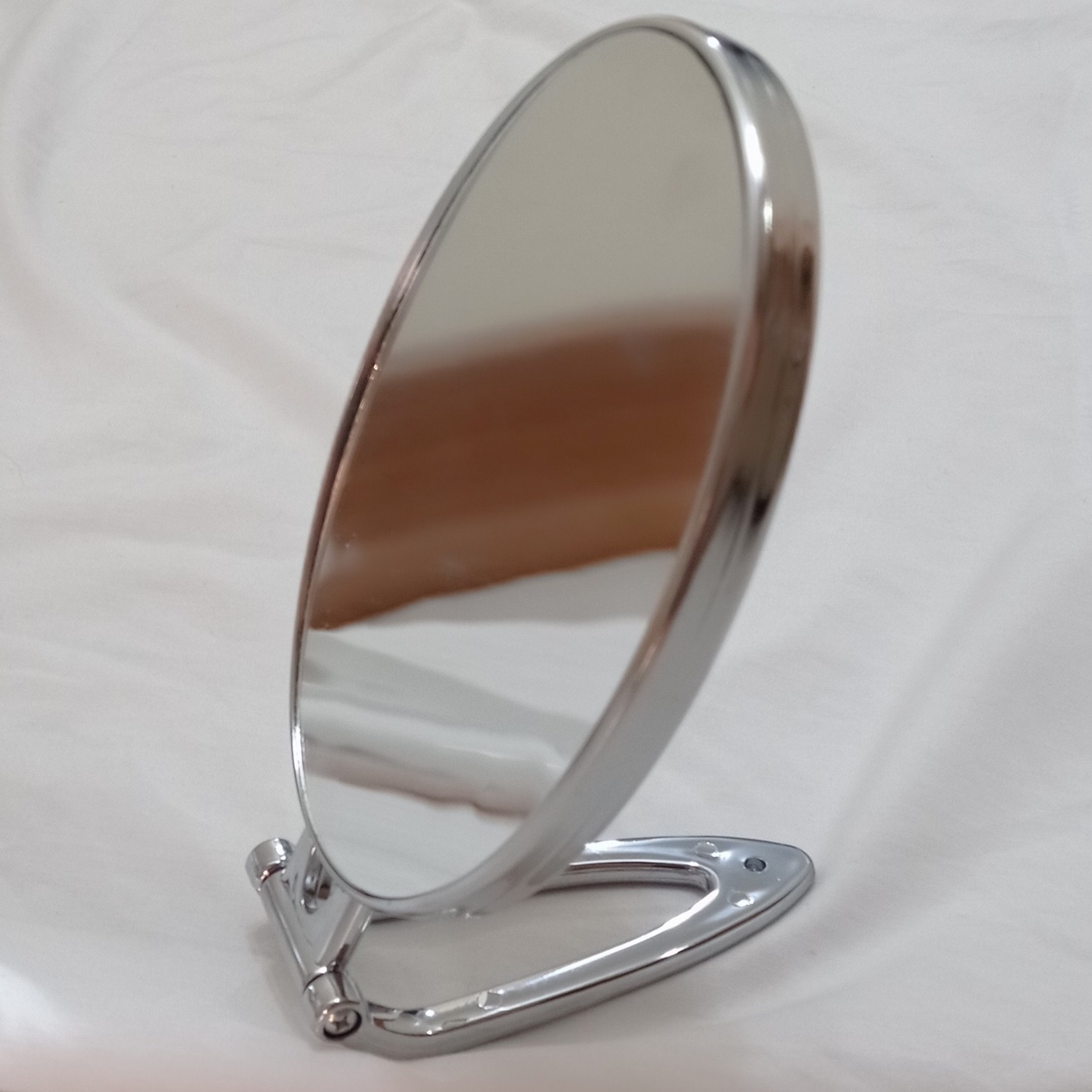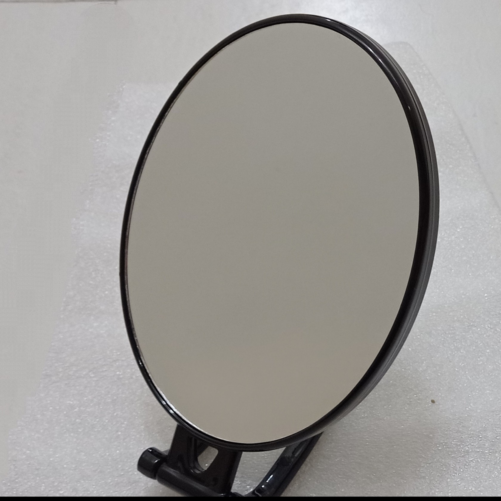 آینه آرایشی بیضی شکل دوطرفه یک طرف ساده وطرف دیگر ۵ ایکس دسته دار وقابلیت تاشو سبک وزیبا در چهار رنگ سیلور سفید مشکی ودودی