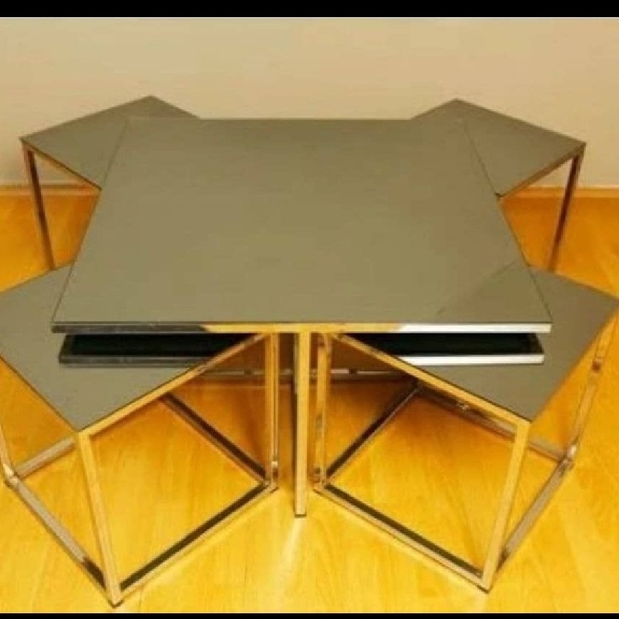 جلومبلی و عسلی پیتزایی مربع ۵ تیکه فلزی فورتیک طلایی و نقره ای صفحه شیشه ای و ان دی اف