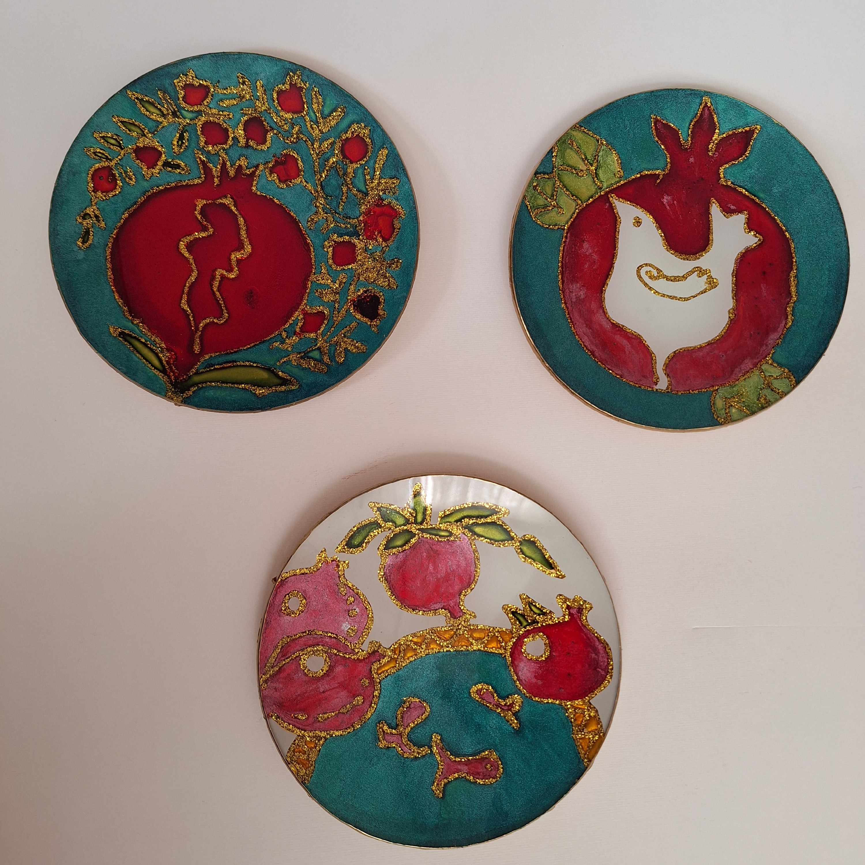هزینه ارسال ب عهده مشتری هست و درب منزل پرداخت میشه نقاشی شده کار دست هس رنگ ثابته و ضد اب هس قابل شست و شو قابل استفاده به عنوان پیش دستی برای پذیرایی یا دیوارکوب