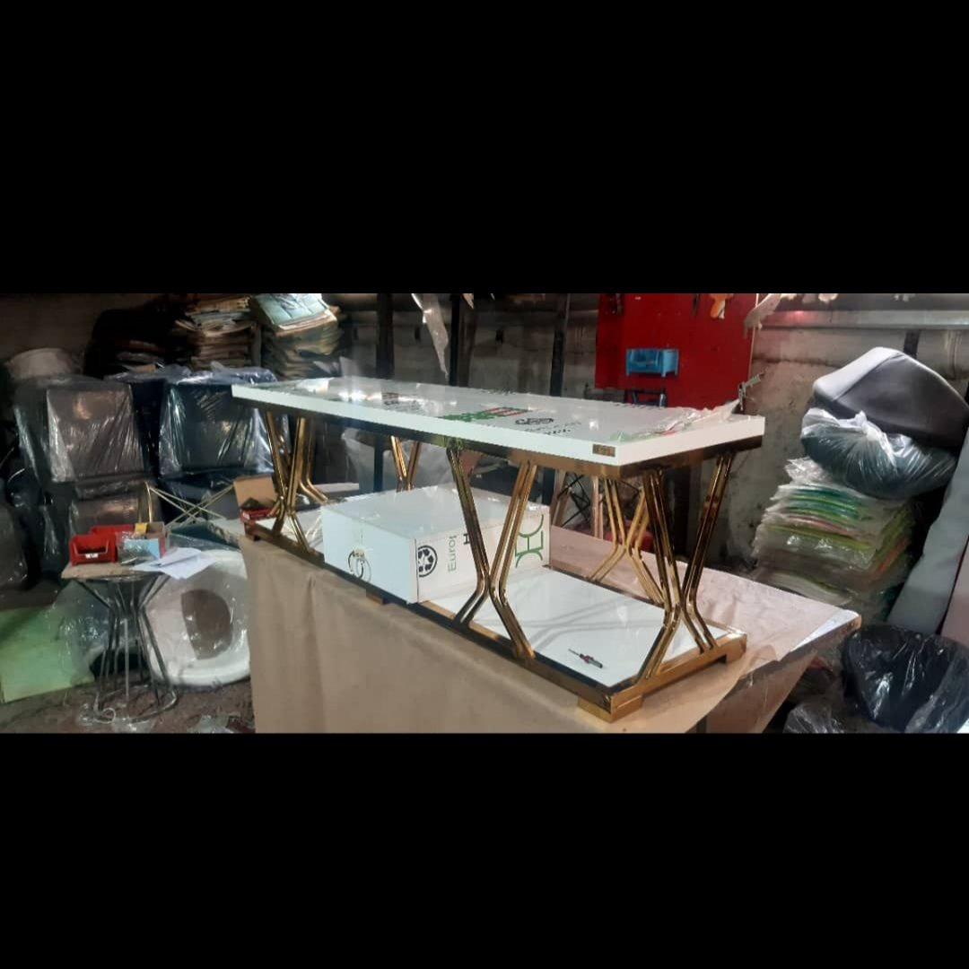 میز تلویزیون بدنه آبکاری استیل صفحه هایگلاس مشکی وسفید سیلور و طلایی طول 180 عمق 40 ارتفاع35