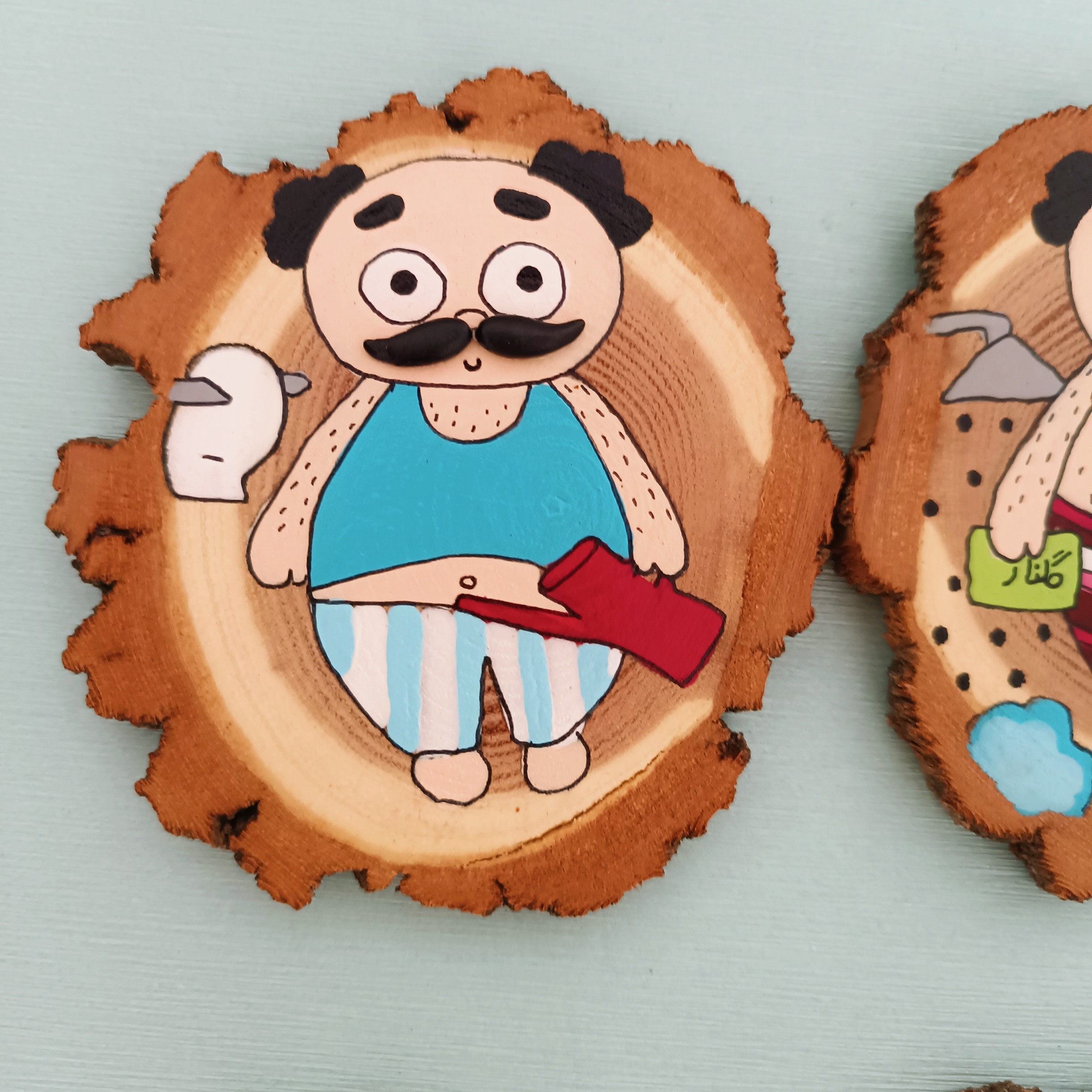 نشانگرحمام دستشویی چوبی نقاشی بارنگ اکرولیک و کاملا ضداب پشتشون چسب دوطرفه داره و قابل نصب روی هرمدل و جنس دری هستن