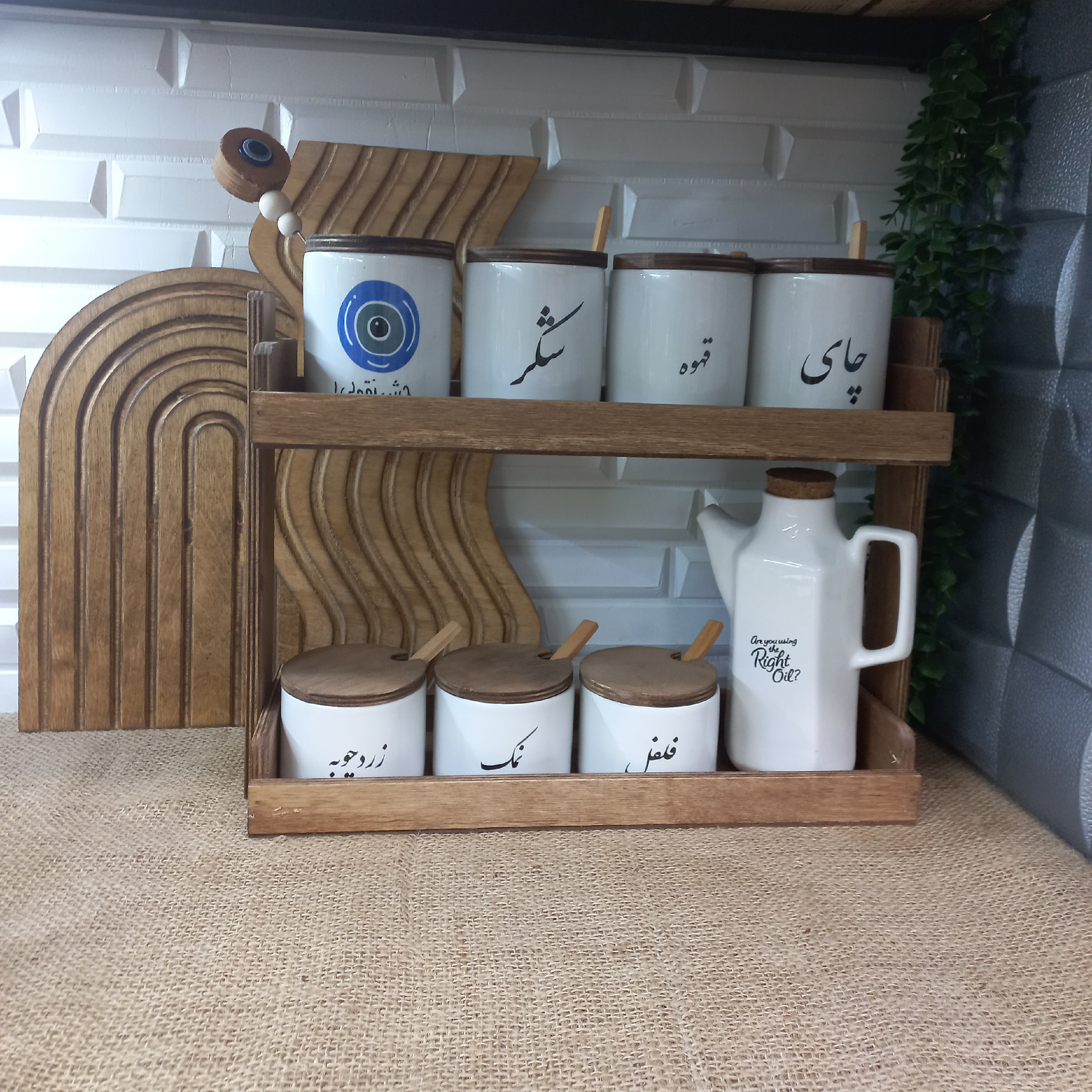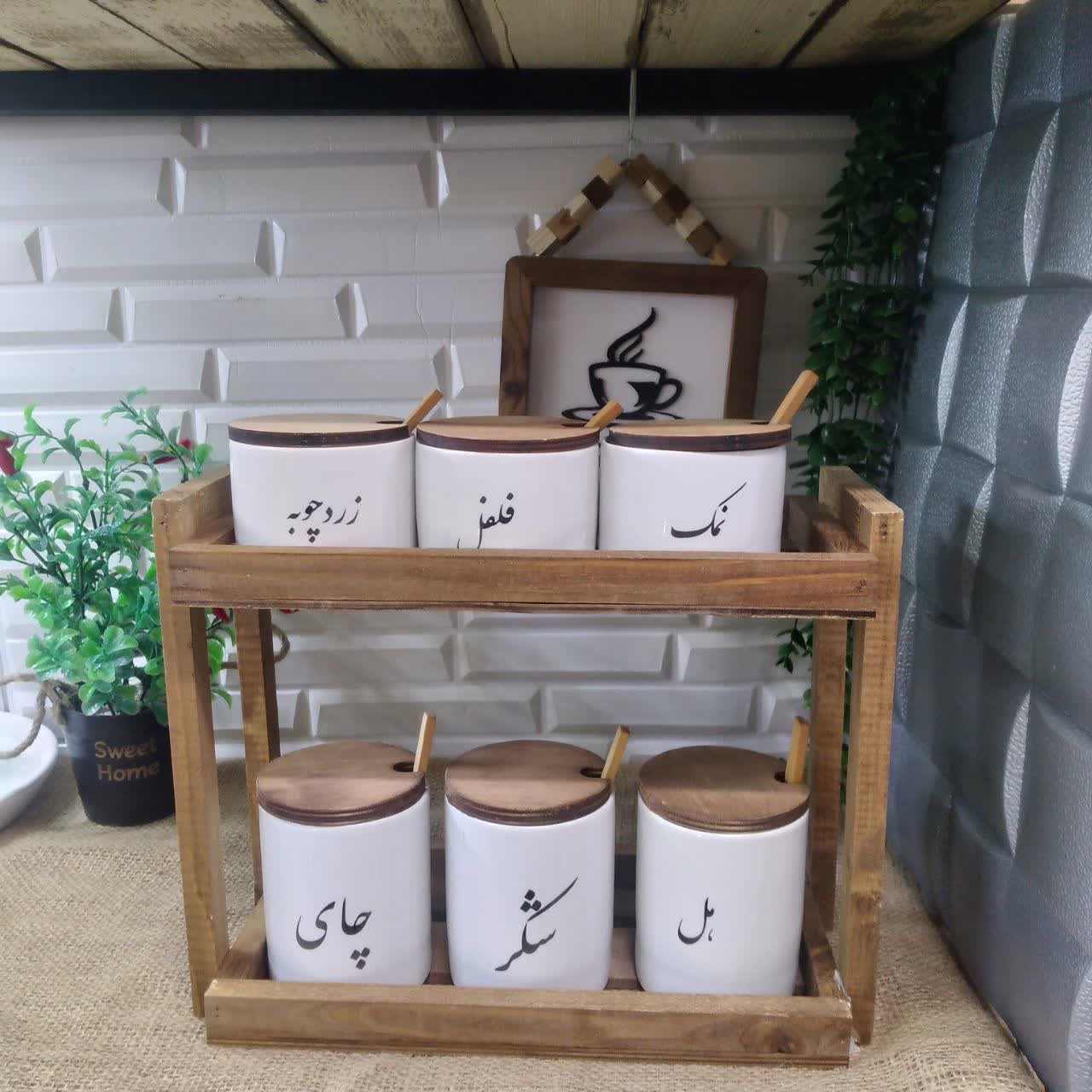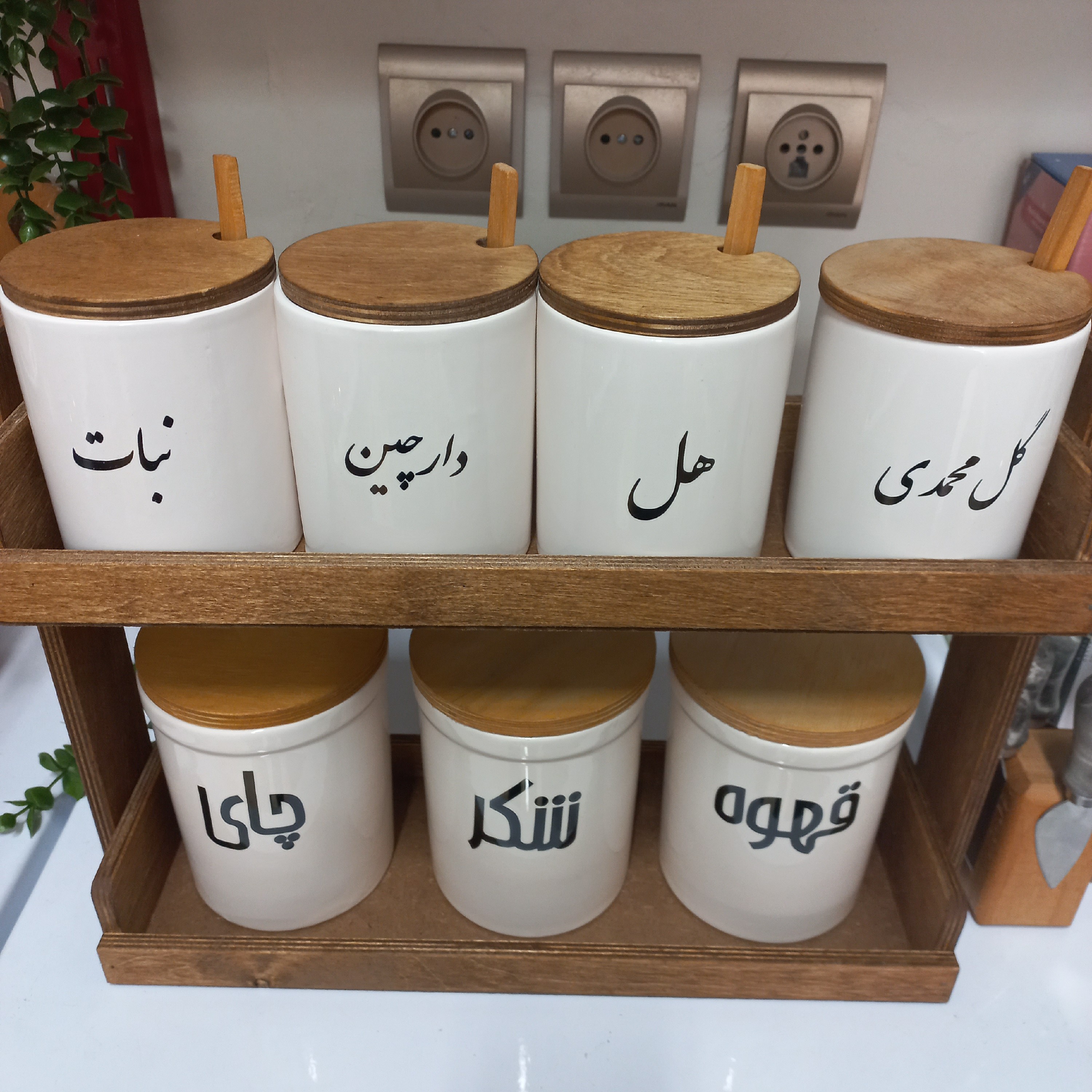 بانکه سرامیکی درب چوبی قند شکر چای مبلمونسرا مدل 290304