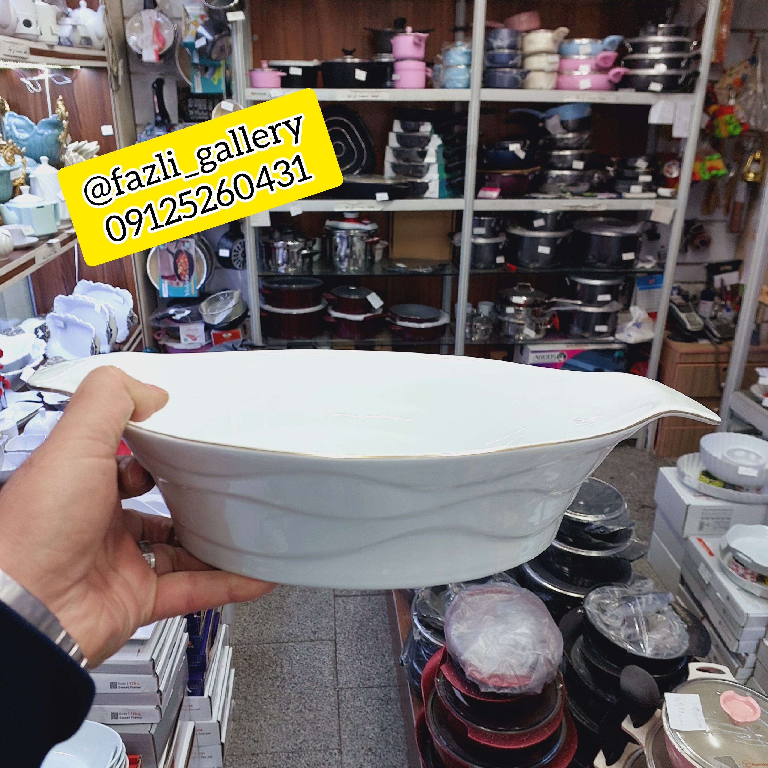 کشکول مدرن سایز متوسط برند لمون ساخت کارخانه چینی لمون جنس چینی با لبه های طلا درجه یک و صادراتی