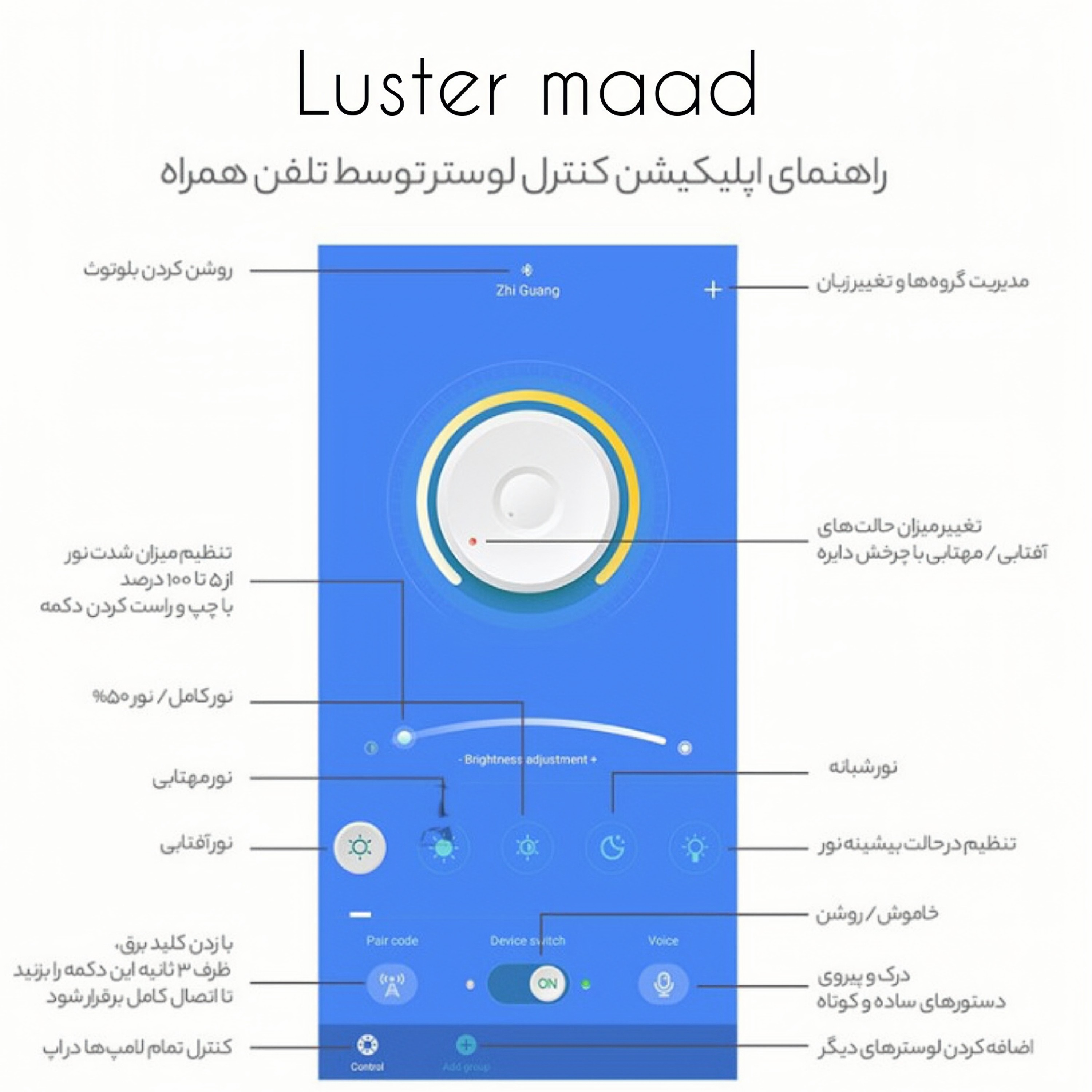 🥇 ماد اولین و تنها برند ثبت شده لوستر مدرن با گارانتی شرکتی در ایران 🇮🇷 با لامپ مدرن SMD توانسته نوردهی بالا و مصرف کم برق داشته باشد ✅جنس :پلگسی جنس بدنه : آلمینیوم ✅رنگبندی: سفید و مشکی الکترواستاتیک ✅ تنظیم ارتفاع: دارد ✅رنگ نور: آفتابی، مهتابی، نچرال ✅ریموت کنترل:دارد ✅قابلیت تنظیم شدت نور و دمای نور: دارد ✅قابلیت تغییر آفتابی مهتابی نچرال با استفاده از اپلیکیشن و هر بار زدن کلید برق و ریموت کنترل ✅ضمانت اصالت و کیفیت قطعات: شرکت ماد ✅کیفیت اس ام دیهای به کار رفته در محصولات شرکتی ماد مرغوب و از نسل جدید است که طول عمر بسیار بالایی دارد ✅ علاوه بر این استفاده از آلومینیوم به عنوان بدنه لوستر که خود نوعی هیدسینگ میباشد طول عمر به مراتب افزایش داده است ✨طراحی فضای نوری شما در گفتگو