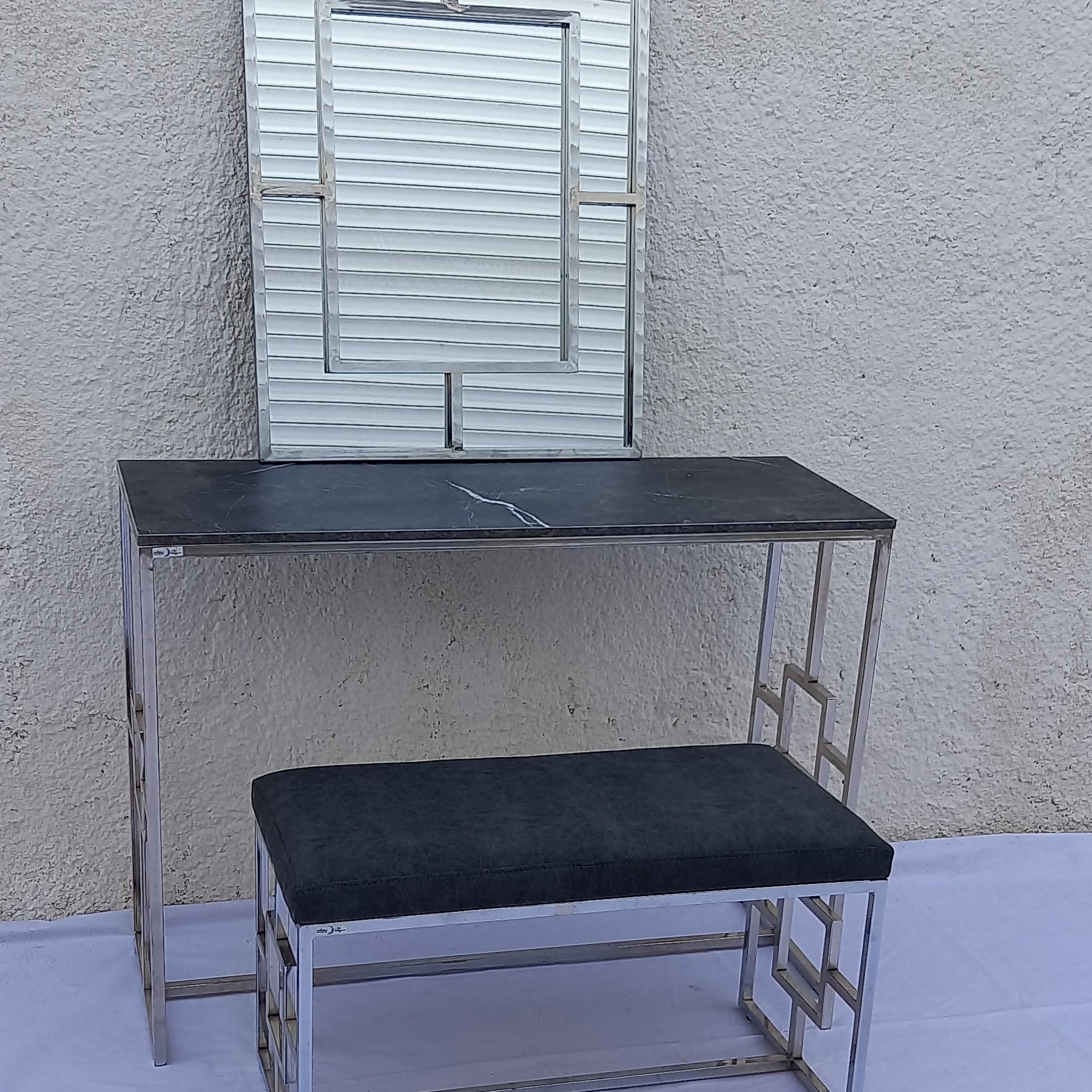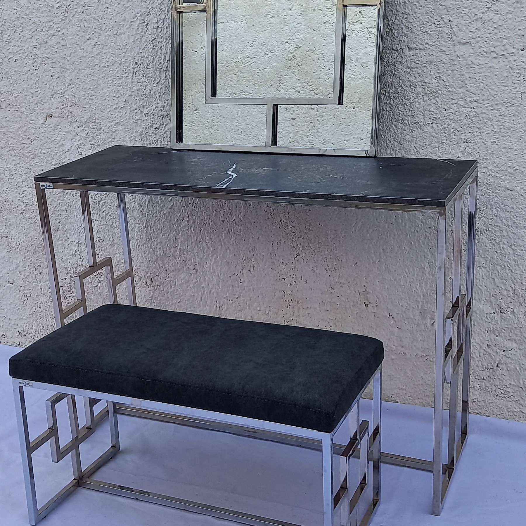 محصول فلزی بسیار زیبا ومستحکم وقابل حمل راحت مناسب منازل و راهروی ورودی سالن های زیبایی نمای لابی کنسول میز مناسب برای مراسم شما ابعاد و رنگ قابل تغییر وزن دقیق نیست ارسال به عهده مشتری گرامی میباشد.