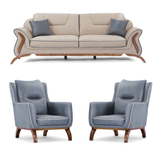 رنگ کاناپه های سه نفره طبق عکس موجود ثابت میباشد و شما با انتخاب رنگ و سفارش آن درواقع رنگ تک نفره ها انتخاب کردید تا با سه نفره ها ست شود مبل راحتی حلما با طراحی فوقالعاده ظریف خود میتواند زیبایی دکوراسیون داخلی شمارا دوچندان کند. استفاده از بهترین نوع اسفنج(35 ویژه) در کنار پارچه درجه یک وارداتی با طراحی خاص و زیبا، از جمله ویژگیهای اصلی این مدل به شمار میروند. این سرویس دارای دو مبل راحتی تکنفره، یک مبل سه نفره با طراحی مدرن میباشد. یکی از اصلیترین بخشهایی که رابطهی مستقیمی با دوام و طول عمر مبلمان دارد، چوب و اسکلت مبل میباشد. به همین منظور، استفاده از چوب راش گرجستانی و روسی که یکی از منحصر بهفرد ترین نوع چوب، برای استفاده از مبلمان راحتی میباشد، در ساخت این مبل مورد استفاده قرار گرفته است.از تسمه کشی لاستیکی در کلاف های مبل و زیر تمامی نشیمن ها استفاده شده.برای کلاف داخلی نیز از چوب نراد روس که از مقاومت بالایی در هر نوع شرایط سخت آب و هوایی است استفاده شده است. پایه های کار و در قسمت هایی از مبل هم برای تزئین از چوب راش تهیه شده است.