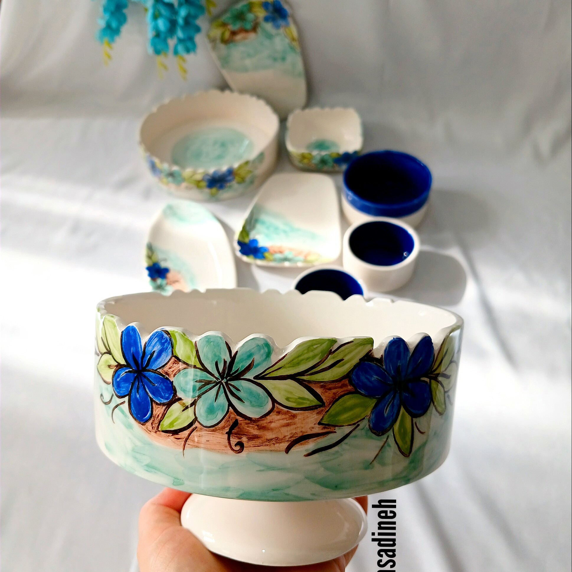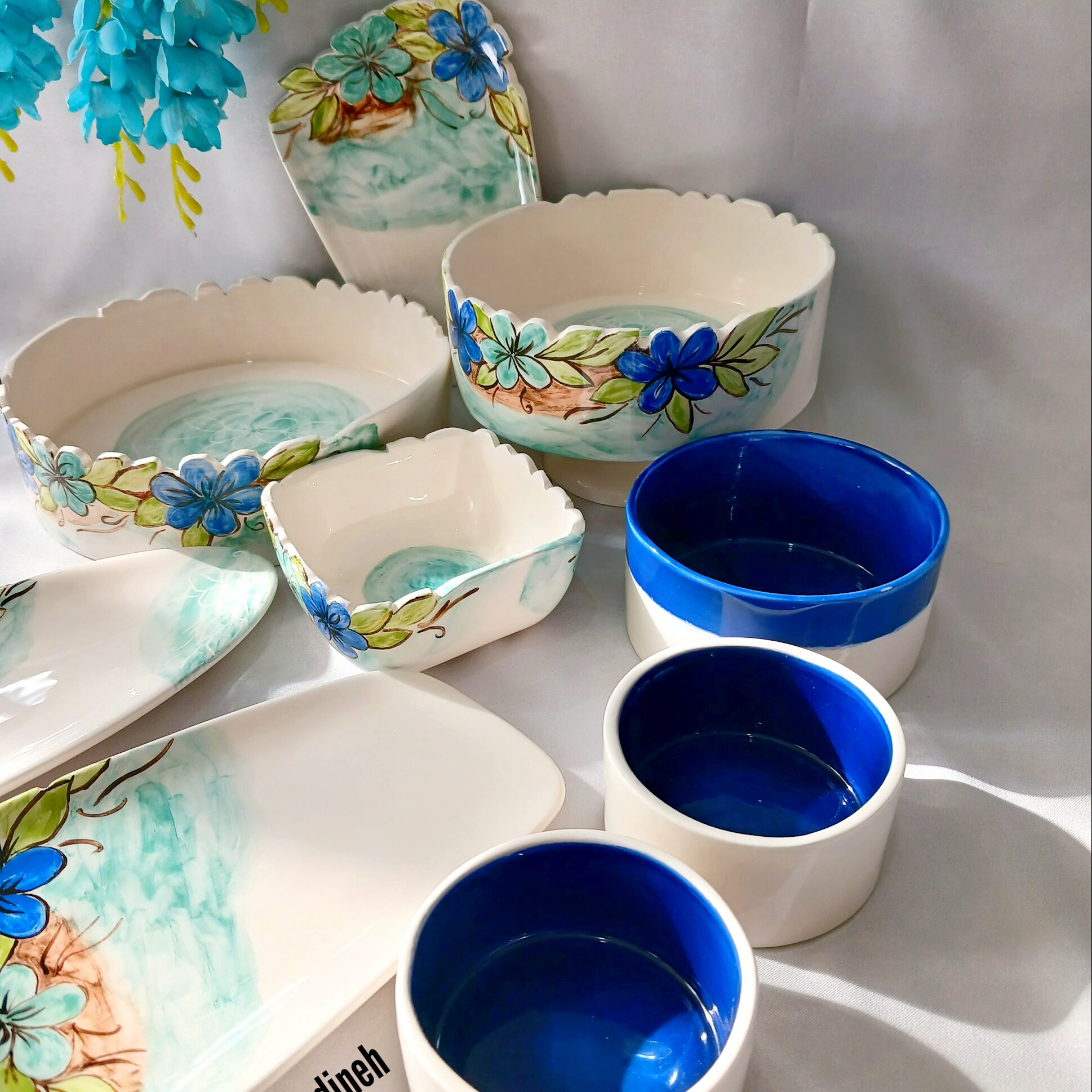 ست پذیرایی ۹ تکه سرامیک دستساز نقاشی شده با دست عالی برای هدیه دادن مصرفی برای پذیرایی و دکور شیک