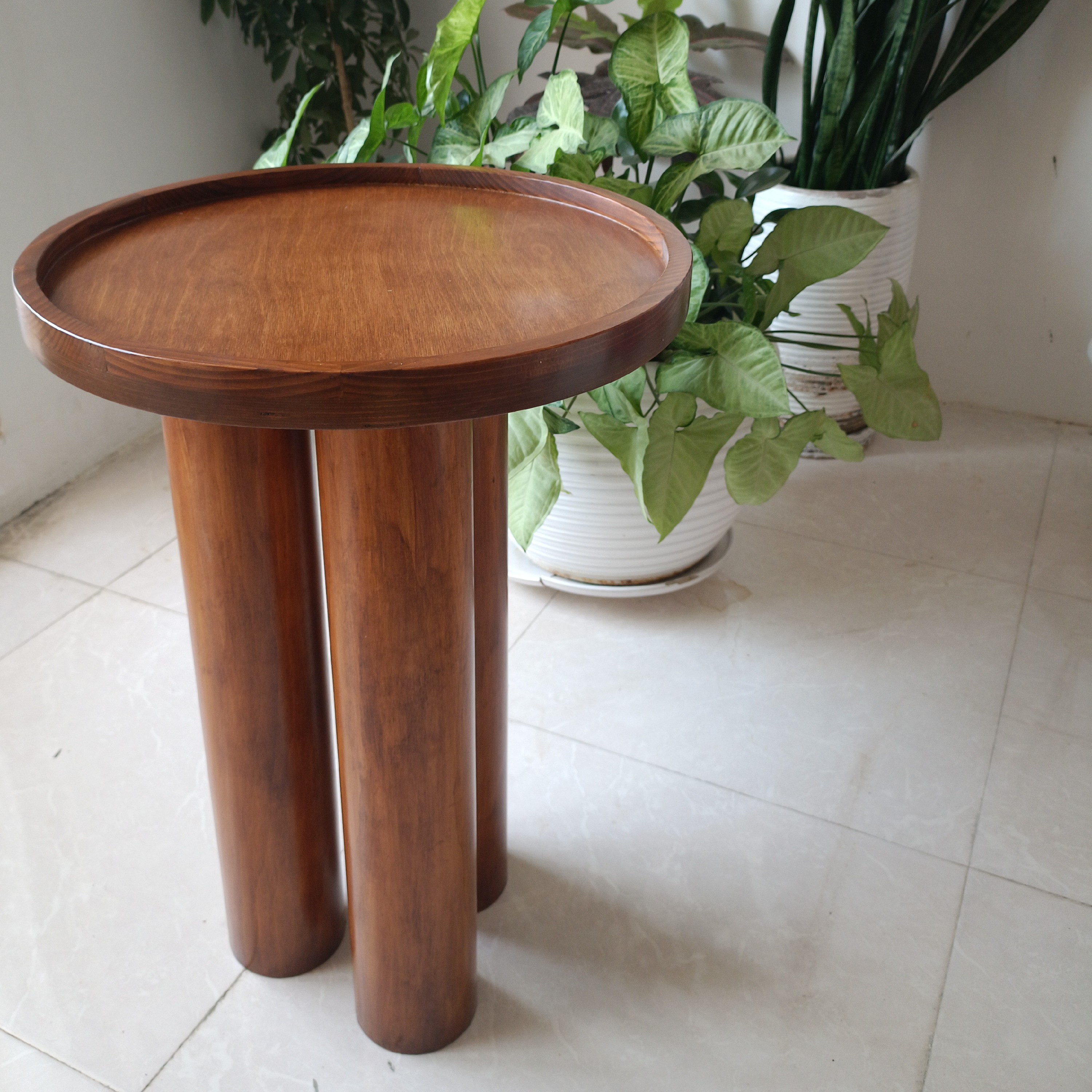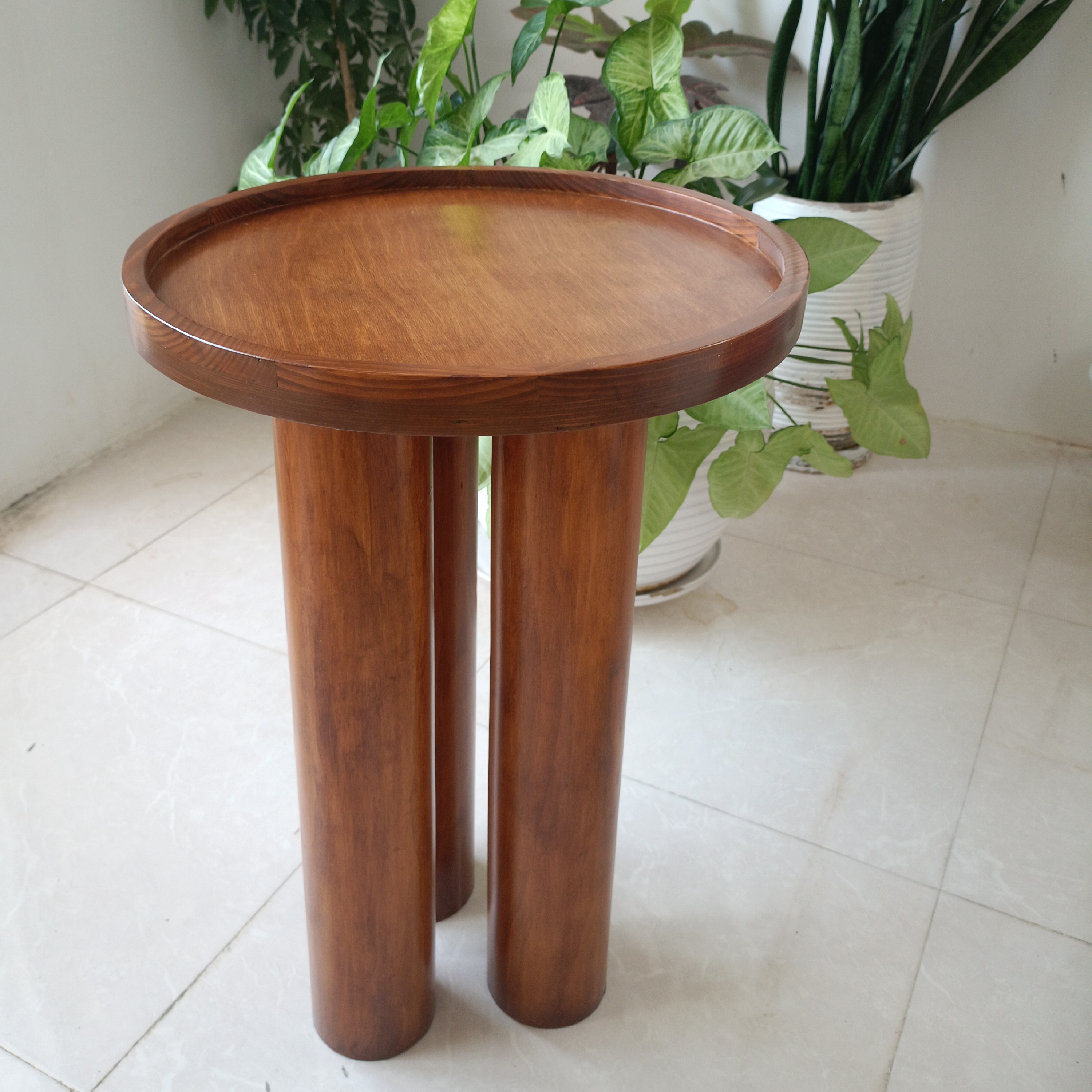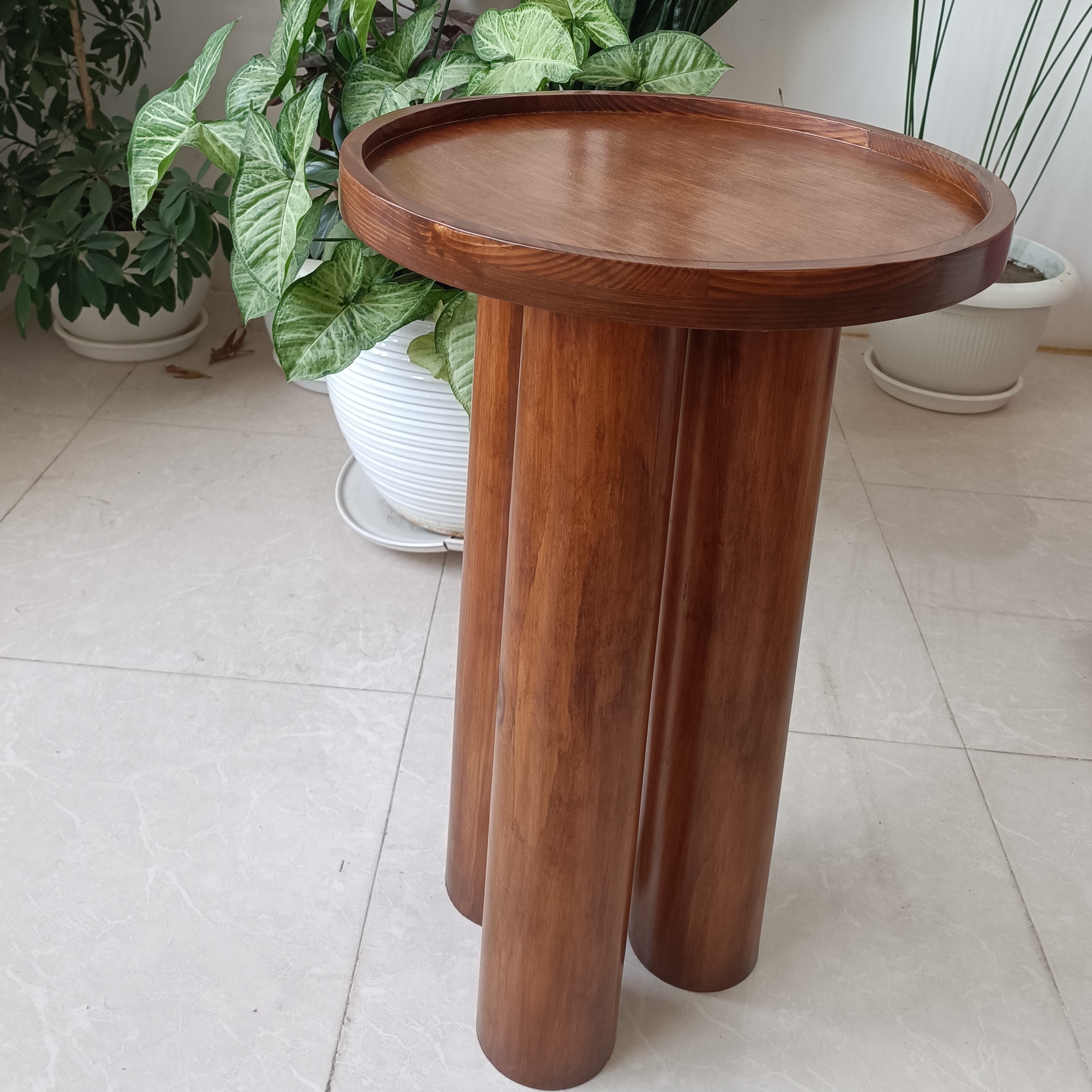 میز عسلی تمام چوبی ساخته شده با چوب طبیعی در رنگهای مختلف قابل سفارش است قطر دایره 40 ارتفاع 50