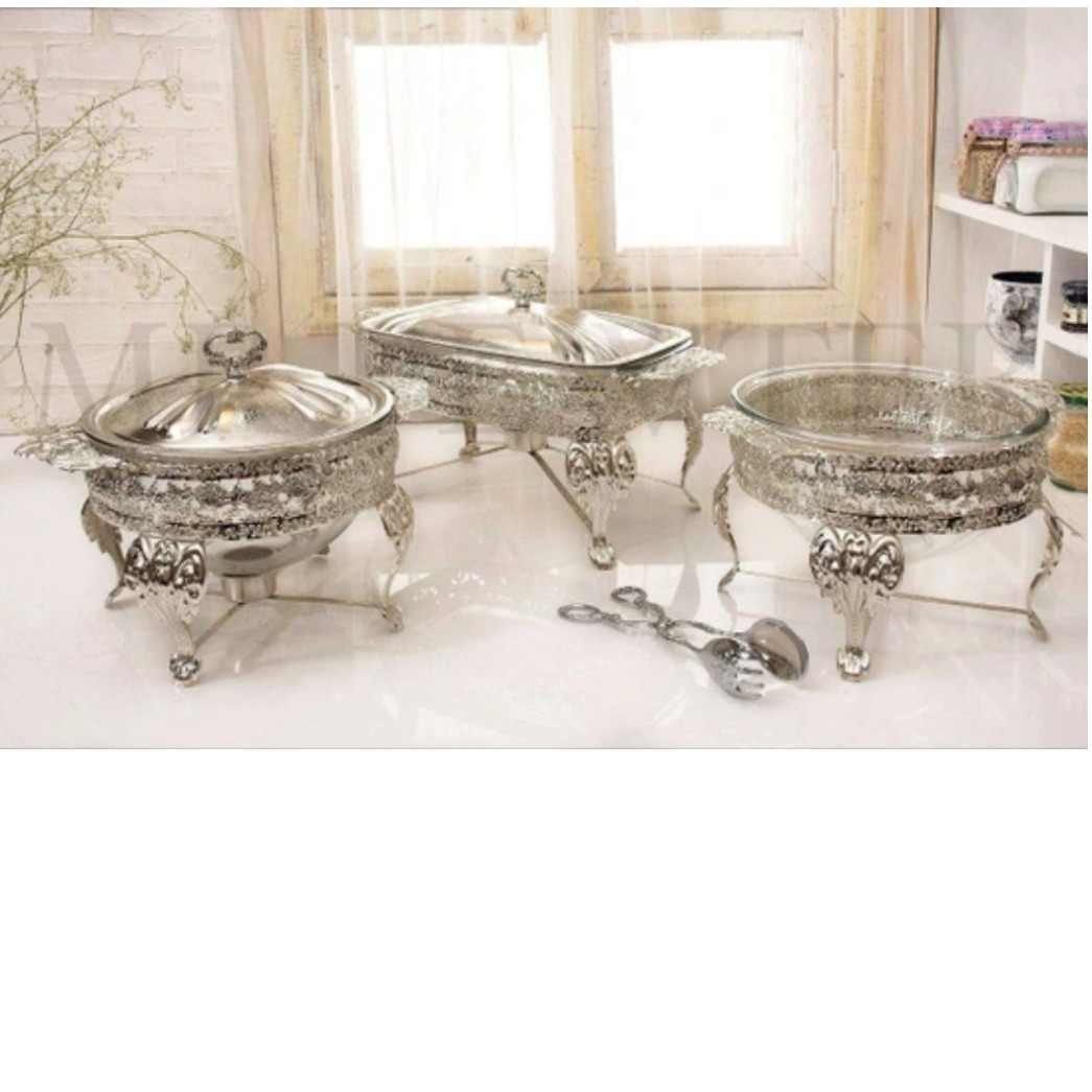 سوفله خوری پیرکس کیفیت عالی رنگ نقره ای هر سه مورد باهم ارسال مبلمونسرا مدل 290540