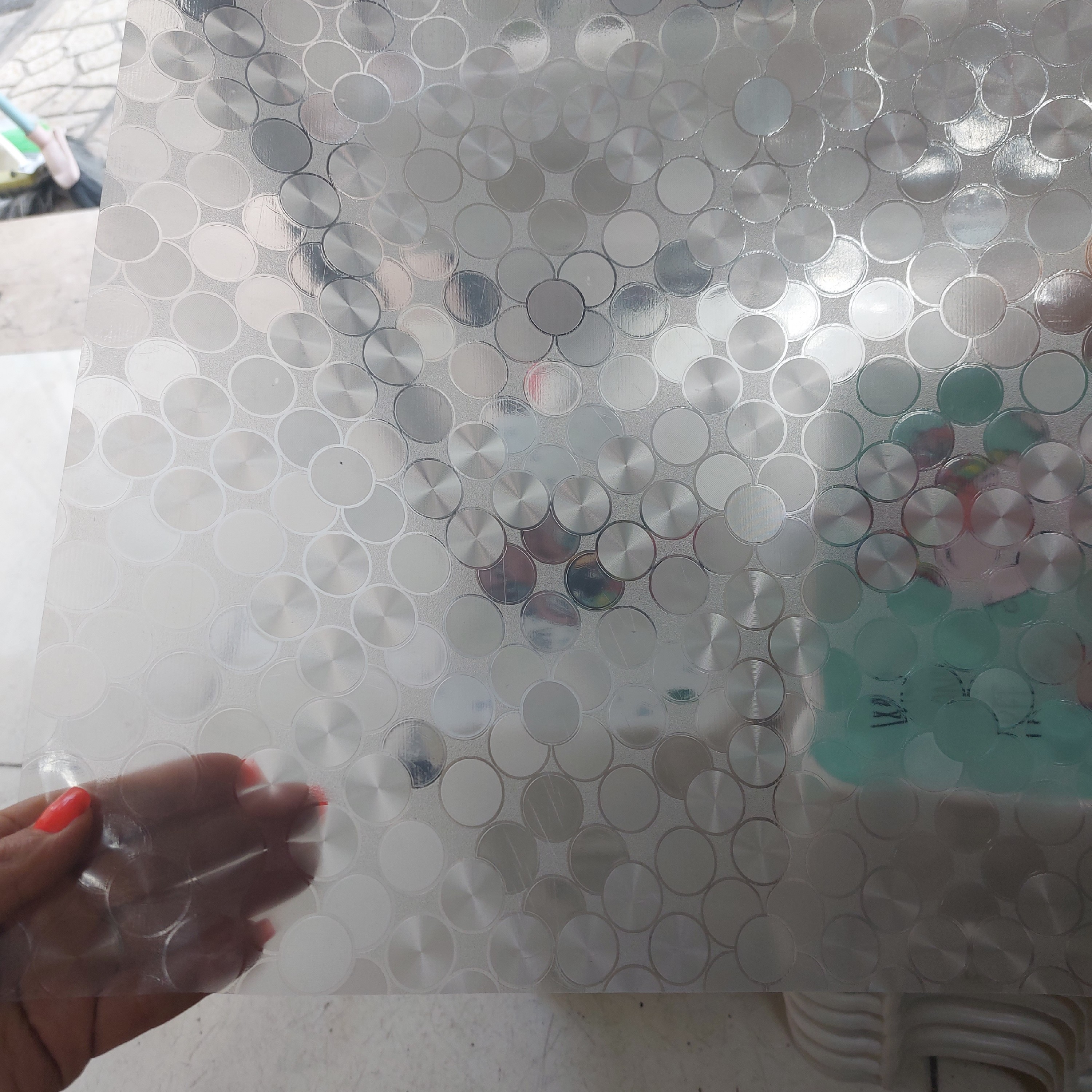 کفپوش یخچال و کابینت شفاف طرح توپی عرض ۵۰ طول هر خرید یک متر محسوب میشه به صورت برشی میباشد