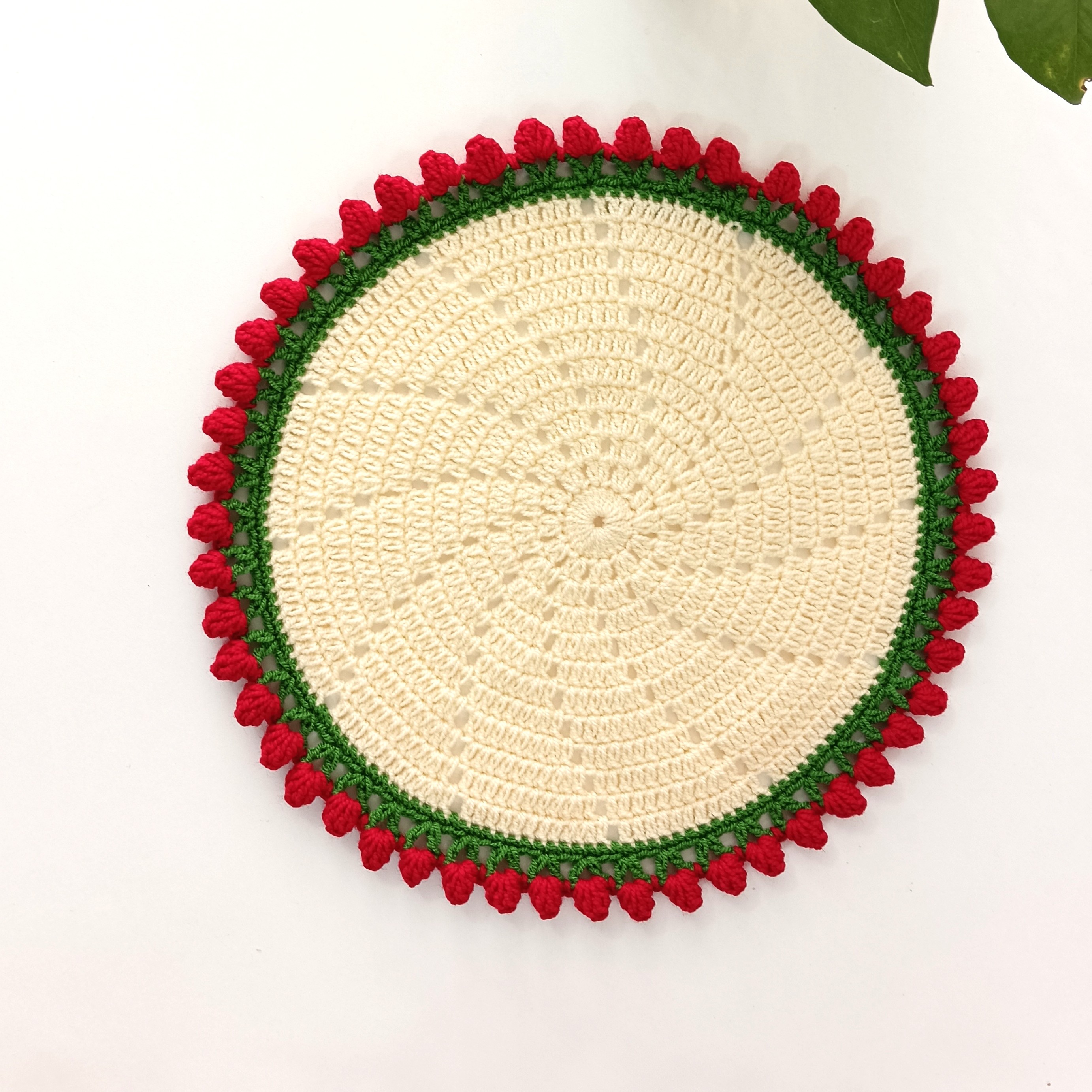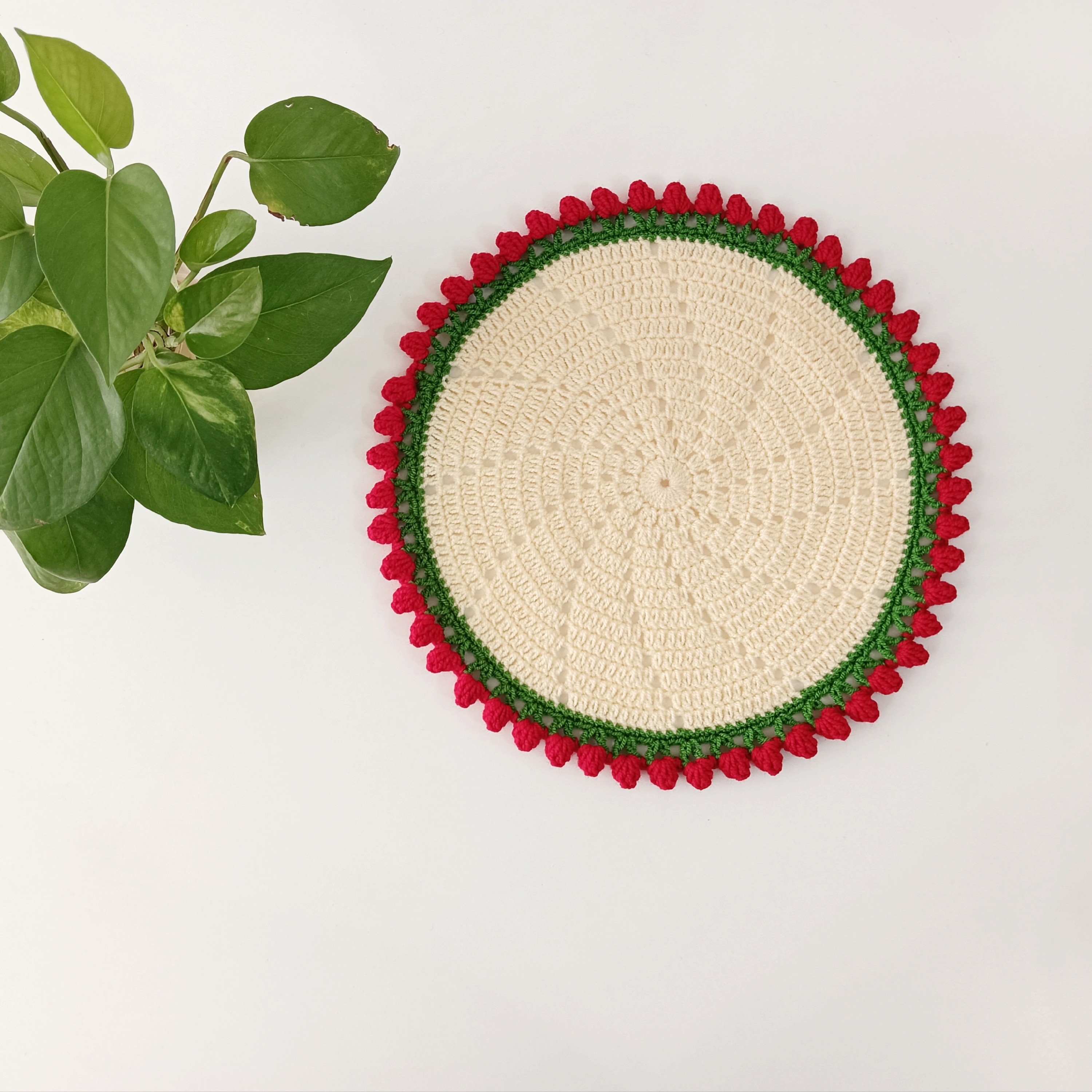 زیر بشقابی بافتنی طرح گل لاله قابل استفاده برای رومیزی مبلمونسرا مدل 298740