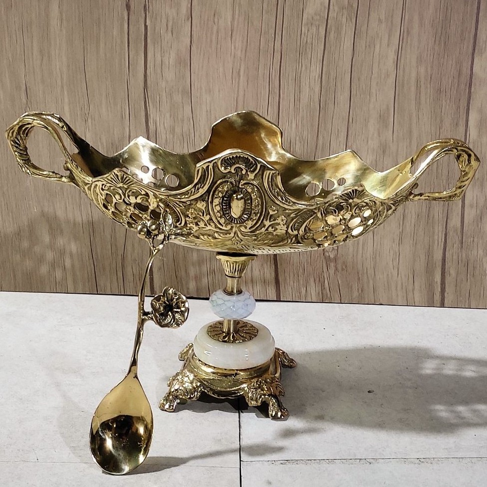 آجیل خوری یا شکلات خوری با قاشق و پایه سنگ مشکی و سفید مبلمونسرا مدل 295862