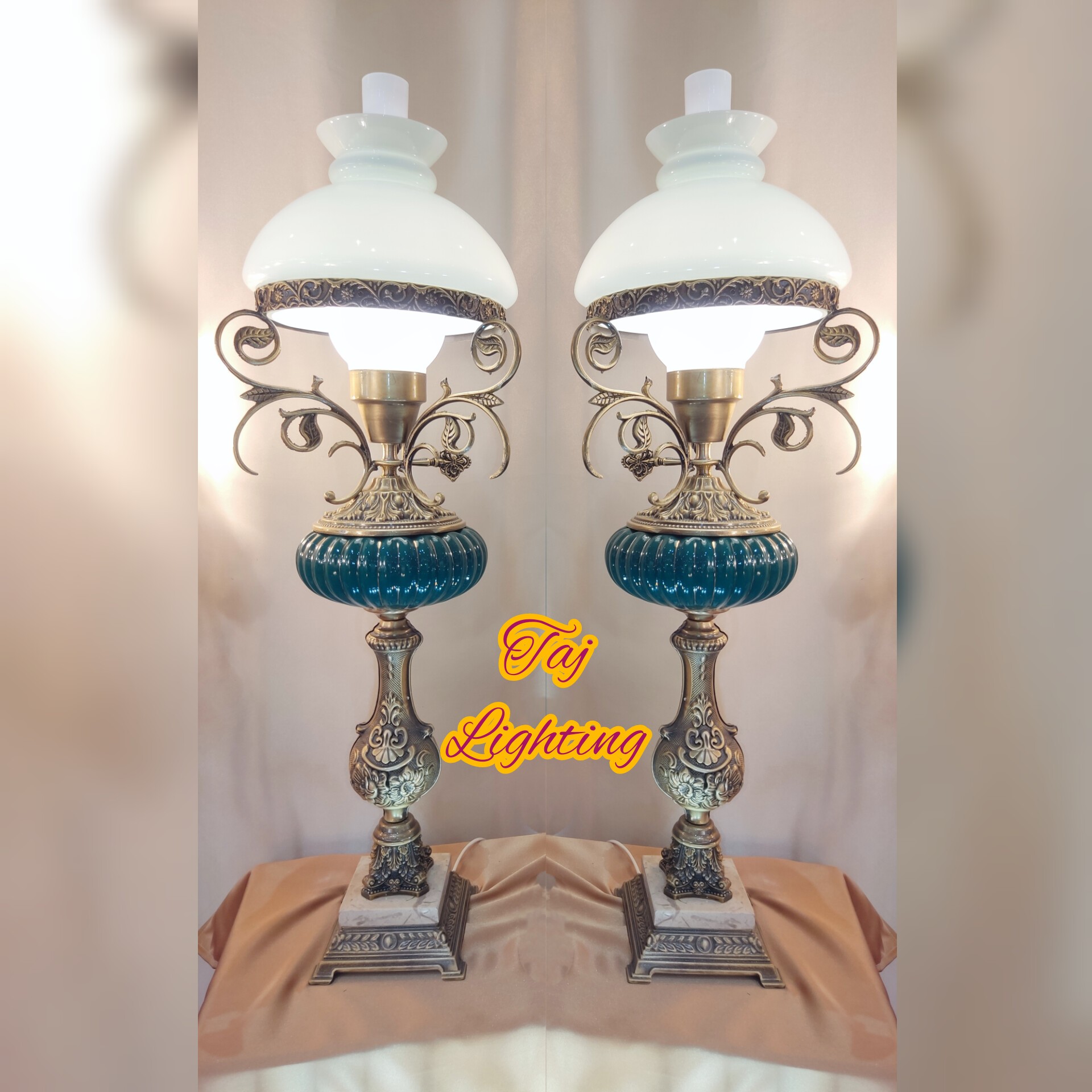 💥قیمت درج شده. قیمت هر عدد چراغ میباشد جنس حباب : بلور رنگ حباب : سفید جنس وسط تنه : چینی رنگ بندی: یشمی، سفید، زرشکی ، فیروزه ای ، سورمه ای جنس پایه ، سوراهی، و فریم قالپاقی برنز با آبکاری آنتیک درجه 1