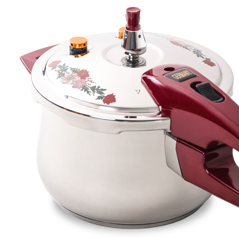در دنیای امروز با توجه به اینکه زمان پارامتر بسیار مهمی است ، استفاده از ابزارهای اشپزی همانند زودپز که به پخت سریع غذا کمک می کند بسیار محبوب شده است .زودپر های گل دار علاوه بر ظاهر زیبا و چند رنگ بودن اجزا ، دارای قفل سر دیگ نیز می باشد که باعث افزایش ایمنی دستگاه می گررد. ظرفیت این مدل از دیگ 11 لیتر بوده که ضخامت بالایی را دارا می باشد. بدنه آن استیل ضد زنگ و کیفیت استیل دیگ بالاست، از نقاط قوت این دیگ زیبایی آن می باشد رنگ و شکل دسته ها ، شکل و محل قرار گیری سوت و گل های روی سر دستگاه ،آن را زیبا نشان می دهد. دسته های بلند این دیگ از نقاط قوت آن می باشد چون بلند طراحی شده و از سوختن دست جلوگیری می کند. همچنین برای ایمنی بیشتر به سوپاپ اطمینان مجهز شده است. همراه دستگاه یک حلقه پلاستیکی (واشر) اضافه و چند واشر اضافه برای سوت و سوپاپ اطمینان آن و همچنین جهت تمیز کاری سوراخ های آن ابزار مناسب قرار داده شده است.