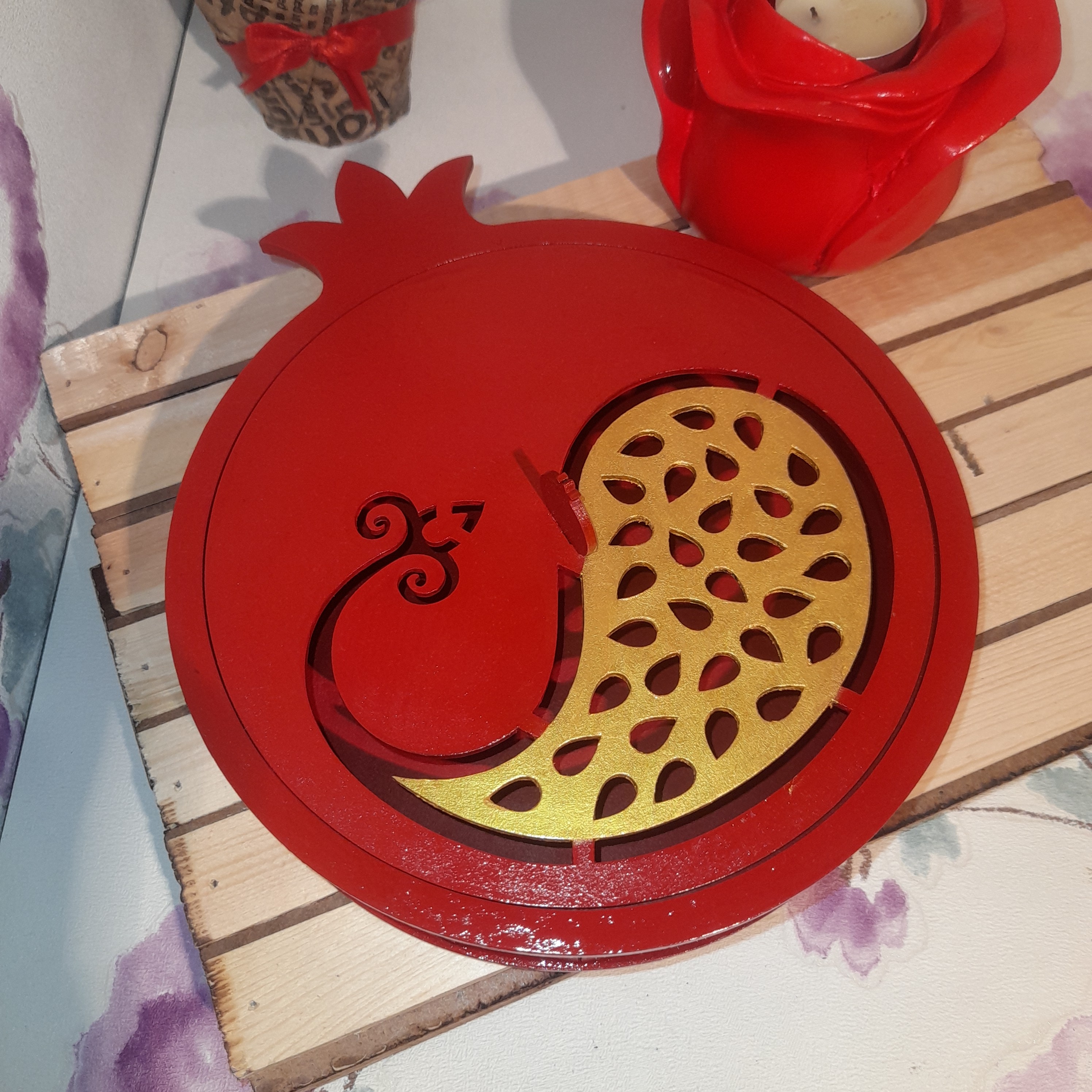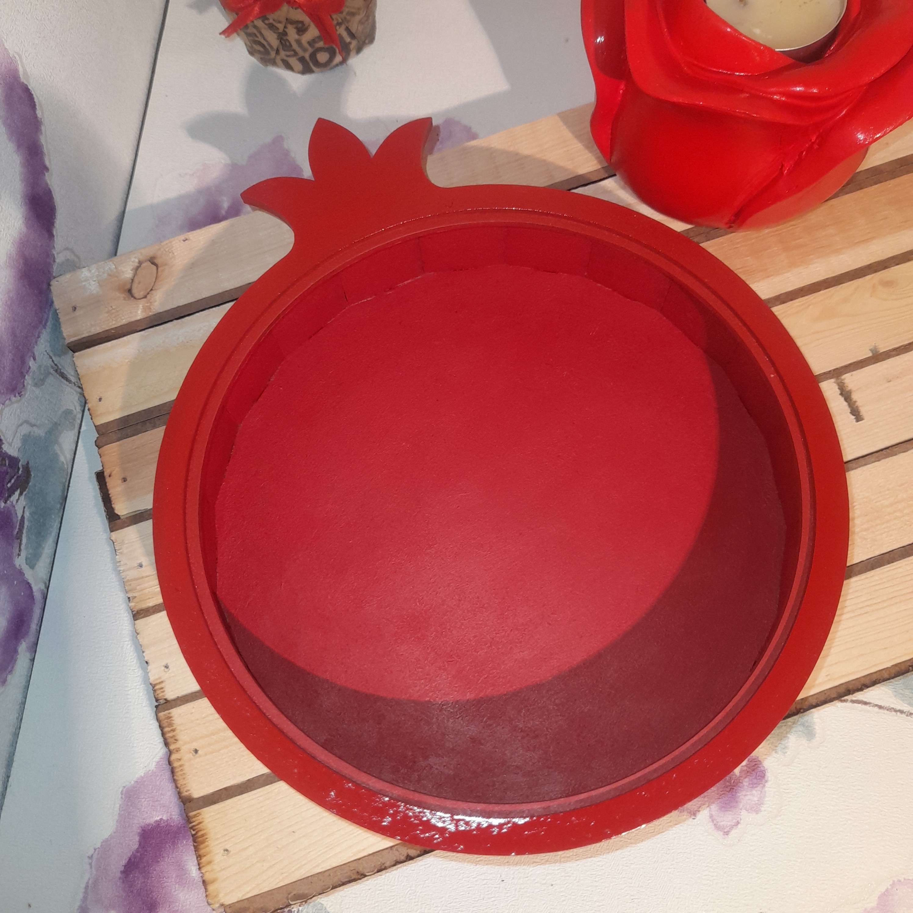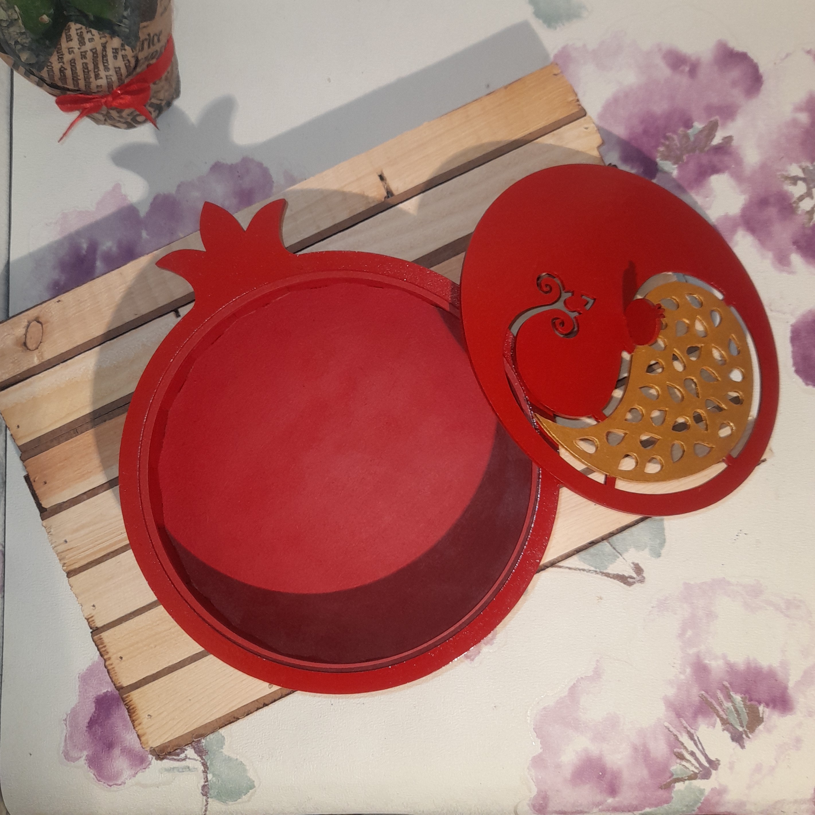 شکلات خوری یا آجیل خوری طرح انار کاری سبک با اندازه عالی، مناسب پذیرایی و استفاده روزمره میباشد. برای دیزاین شب یلدا و حتی بعنوان آجیل خوری در مهمانی ها و ایام عید بشدت زیبا و خاص هست. کار با دست انجام شده و رنگ بکار رفته از برند Rich میباشد. ضخامت چوب ۳ میل هست که باعث سبکی کار شده. با رنگ غیر از قرمز هم قابل سفارش میباشد.