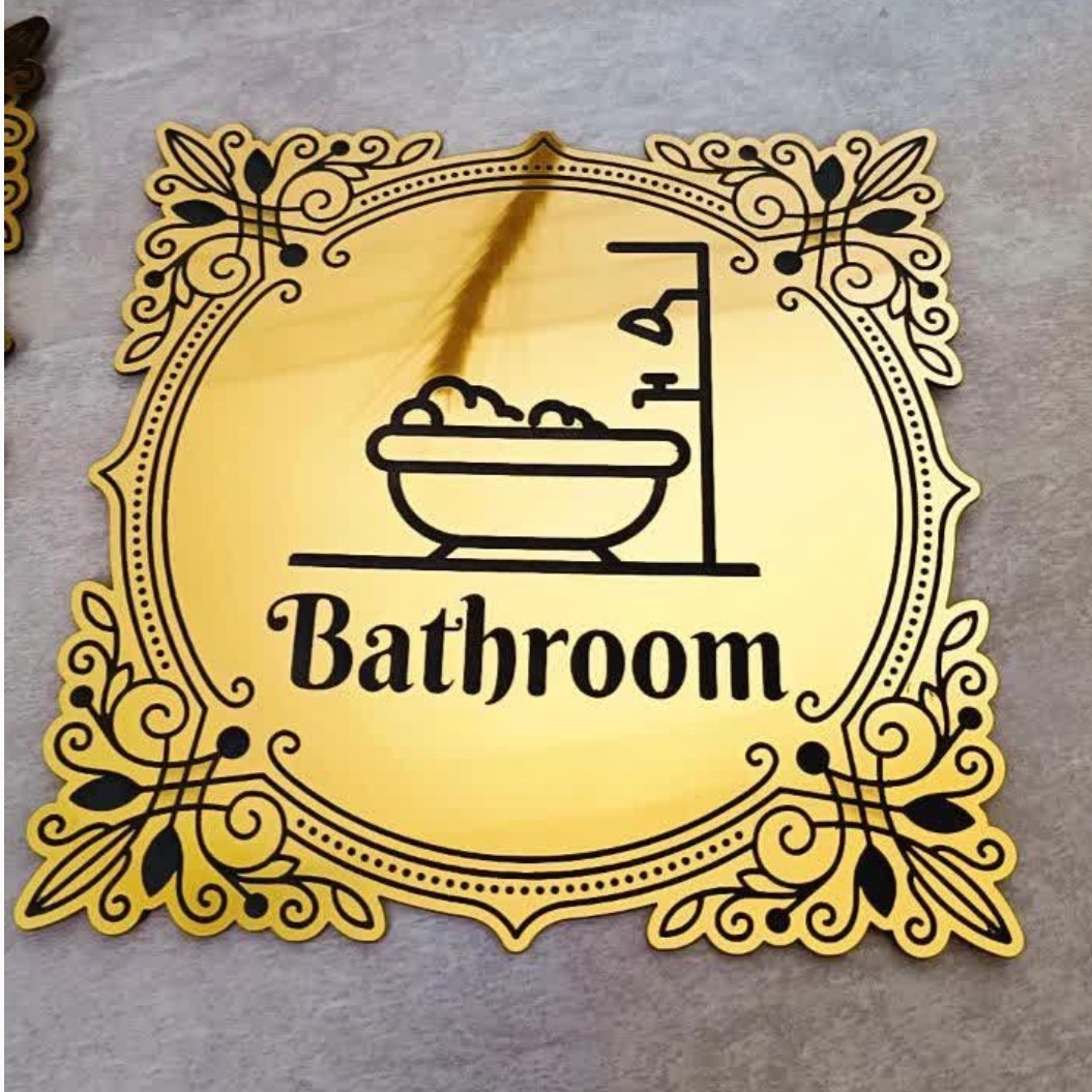 نشانگر حمام و دست شویی حک و طراحی اختصاصی طرح شما ابعاد دلخواه جنس مولتی استایل طلایی آینه ای یا نقره ای
