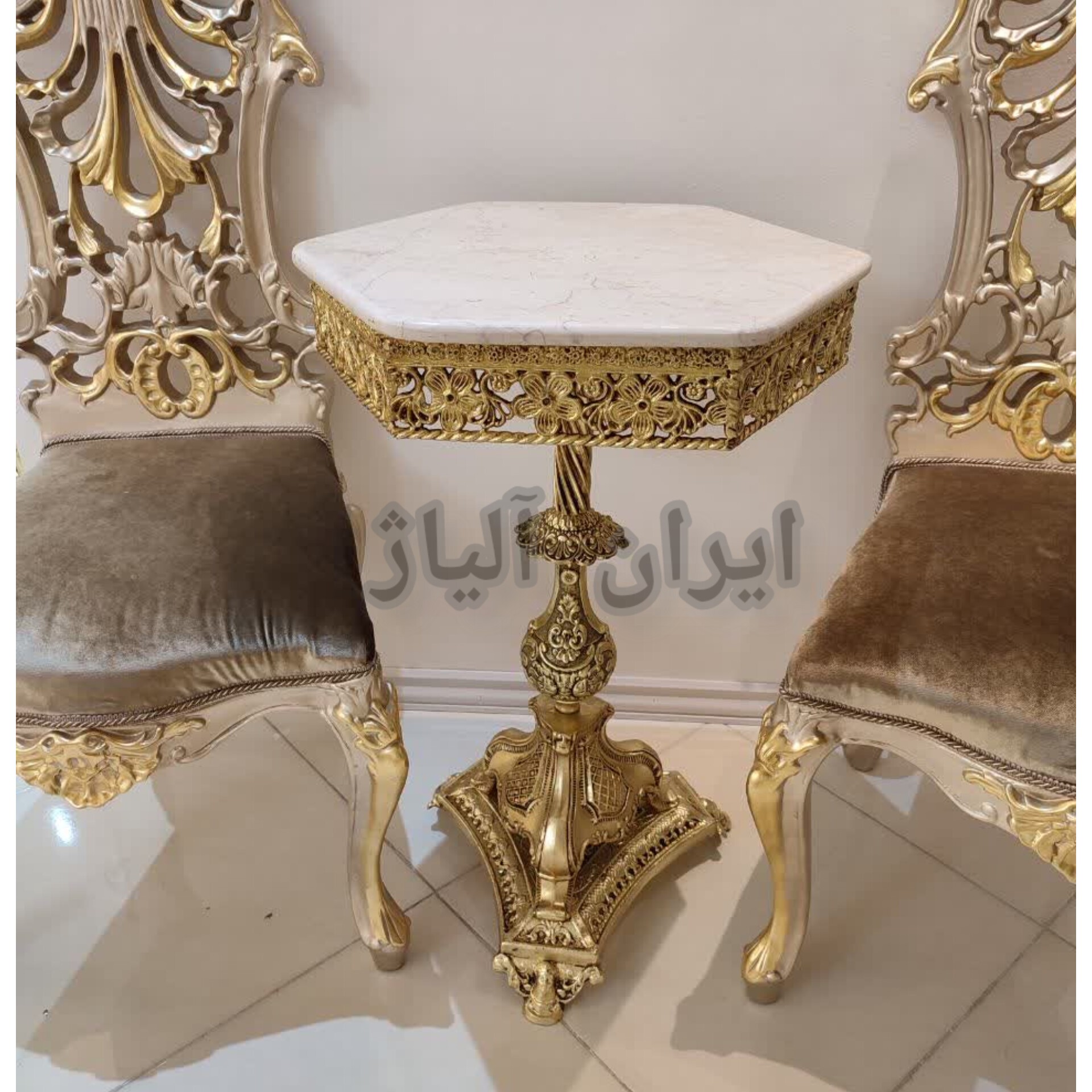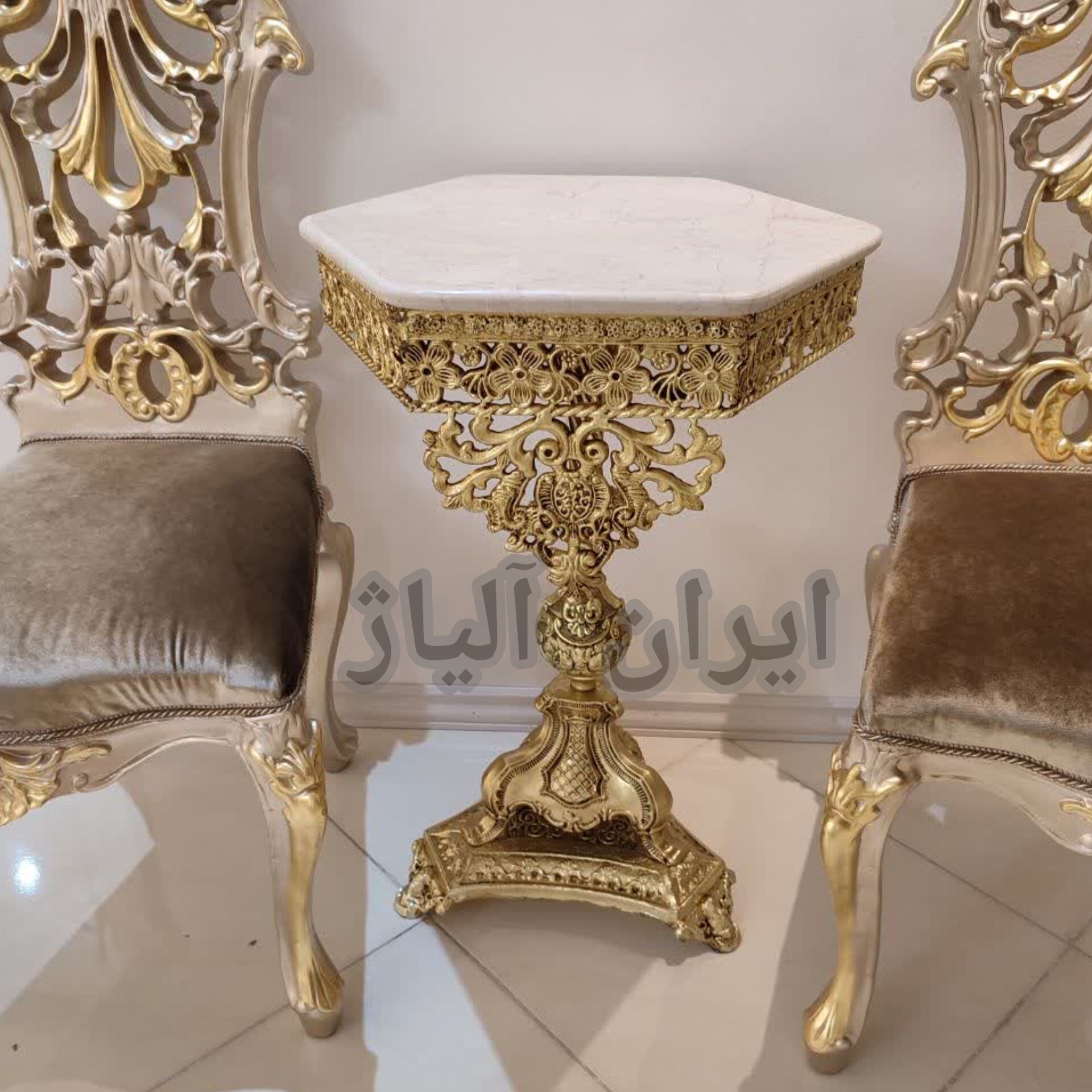 میز خاطره میز سماور ارتفاع 75 عرض سنگ 50 صفحه شش ضلعی با صفحه گرد و بیضی و مربع موجود رنگ ثابت با ده سال ضمانت آبکاری و کارت گارانتی