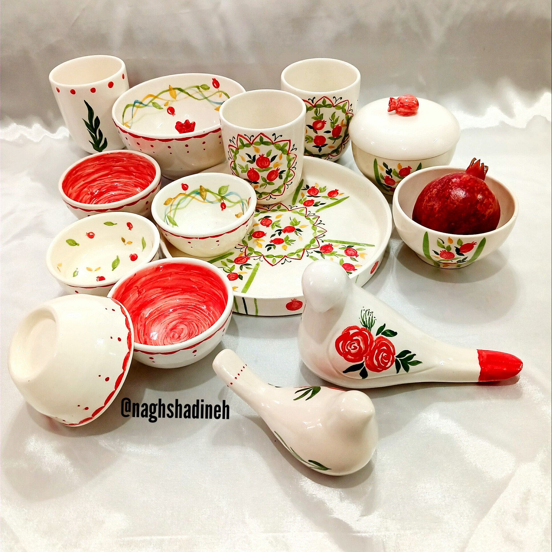 ظرف سرامیکی سه تکه ست کاملش هم موجود میباشد طرح یلدایی خاص منتسب هدیه،دکور و یلدای عروس سرامیک دستساز و کاملا کاربردی